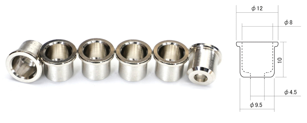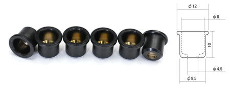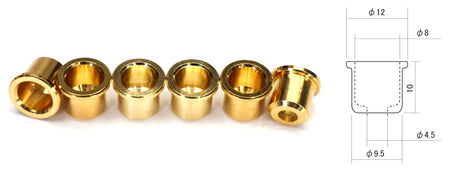 Set of 6 Bass Guitar String Ferrules with lip, for mounting the strings through the body.