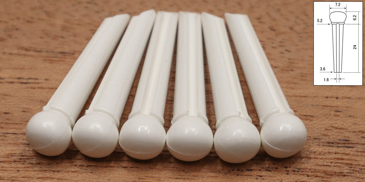 6 White Plastic Bridge Pins, slotted.