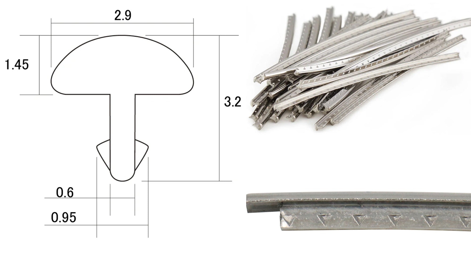Fretwire, Jumbo Nickel Silver (1.45x2.9mm, 0.6 tang), pre-cut 24 pack