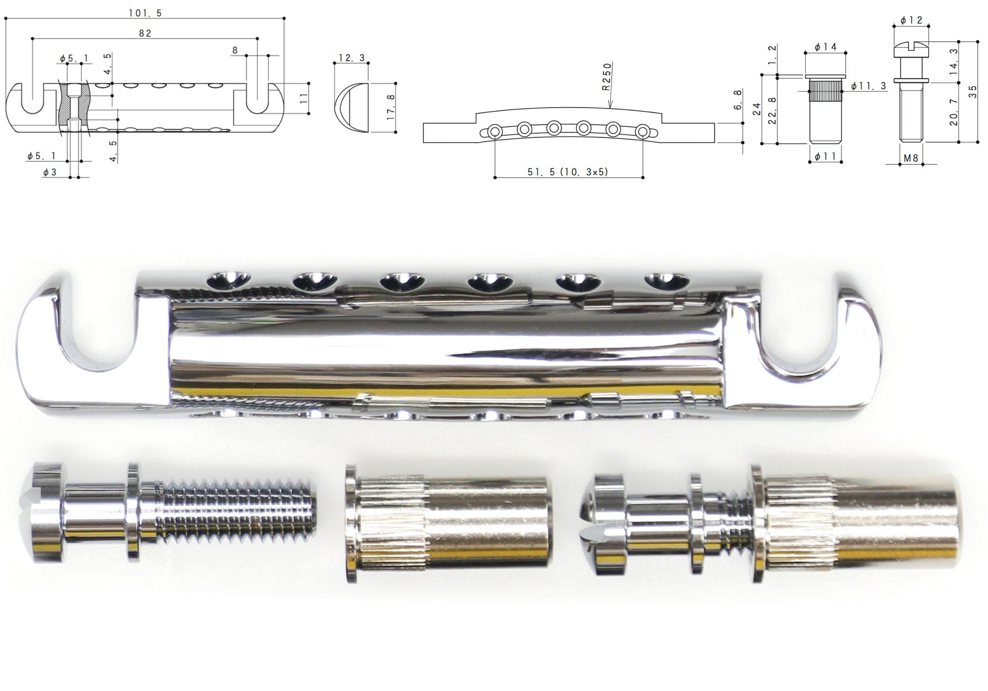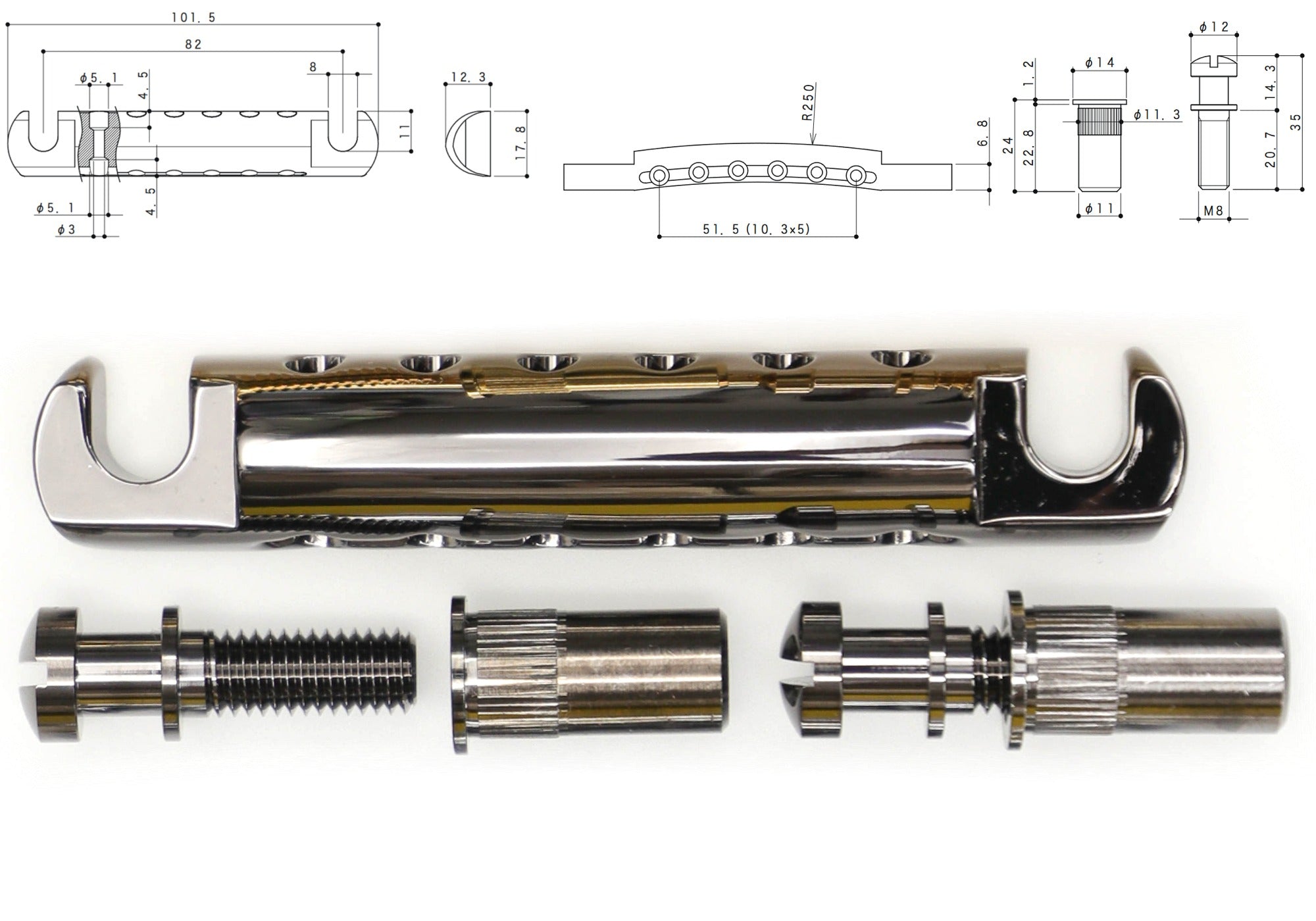 Matching Nashville-style Tune-o-matic Bridge GE103B-T can be found here.