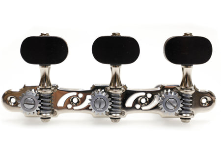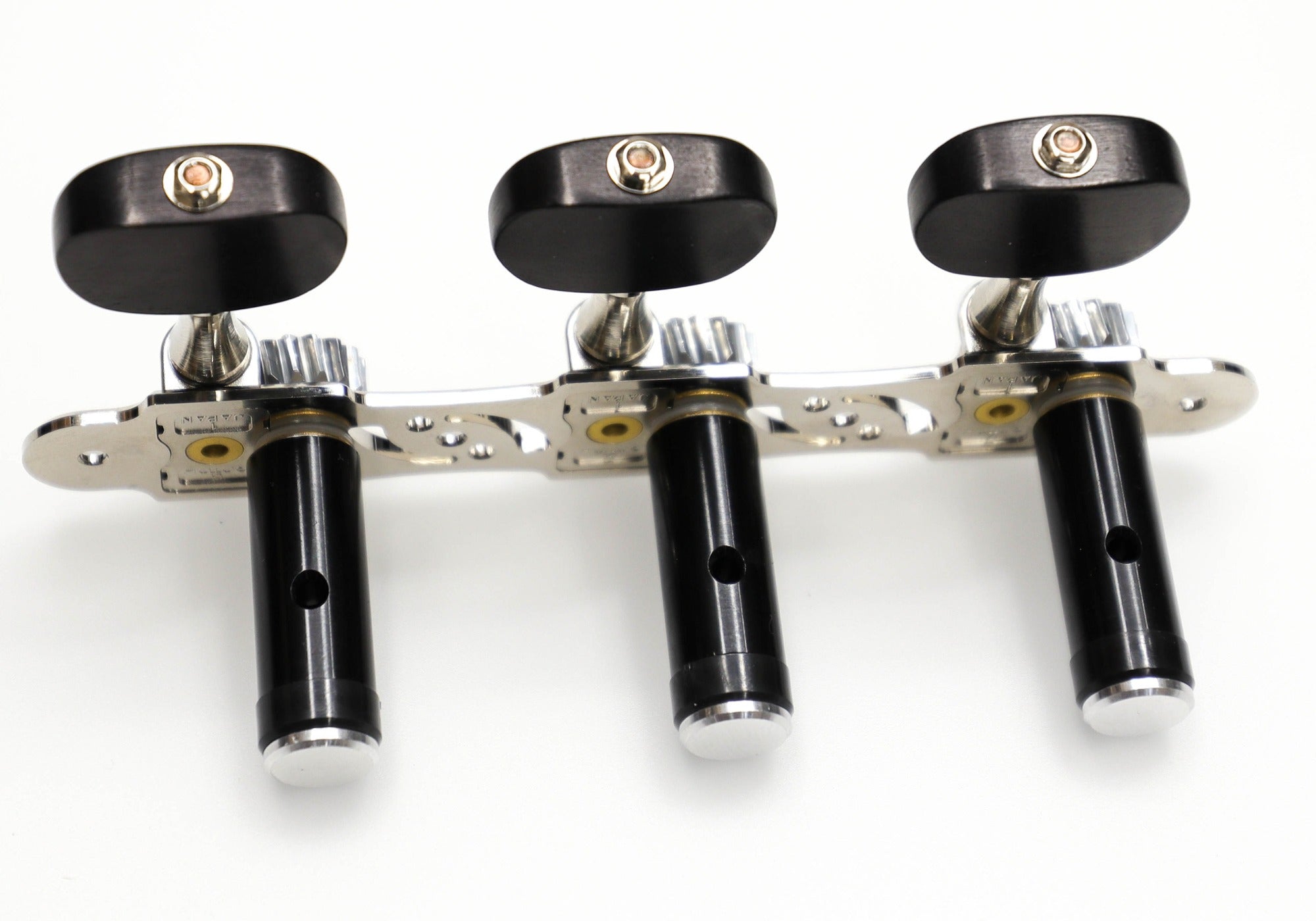 Set of Premium Lubri-Plated Gotoh 35G510S series tuners, Nickel plate, Ebony Wood knobs, Black Aluminum Rollers, complete set.