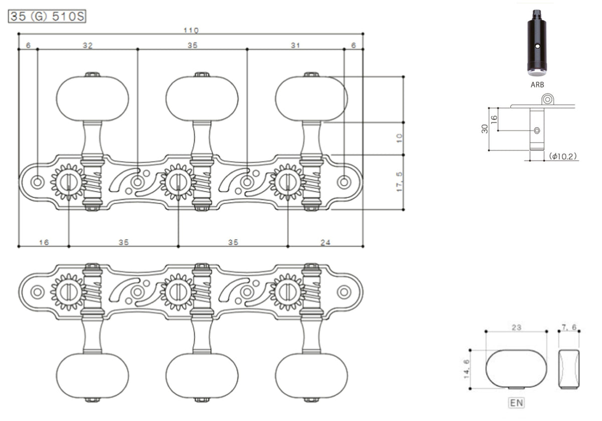 The rollers and knobs in the 35G510S series are interchangeable (35AR,35ARB,35P) so any of the tuners listed in this lot can have their Knobs and Posts swapped to achieve the look you’re after – please don’t hesitate to ask us if you cannot find the right combination in stock.