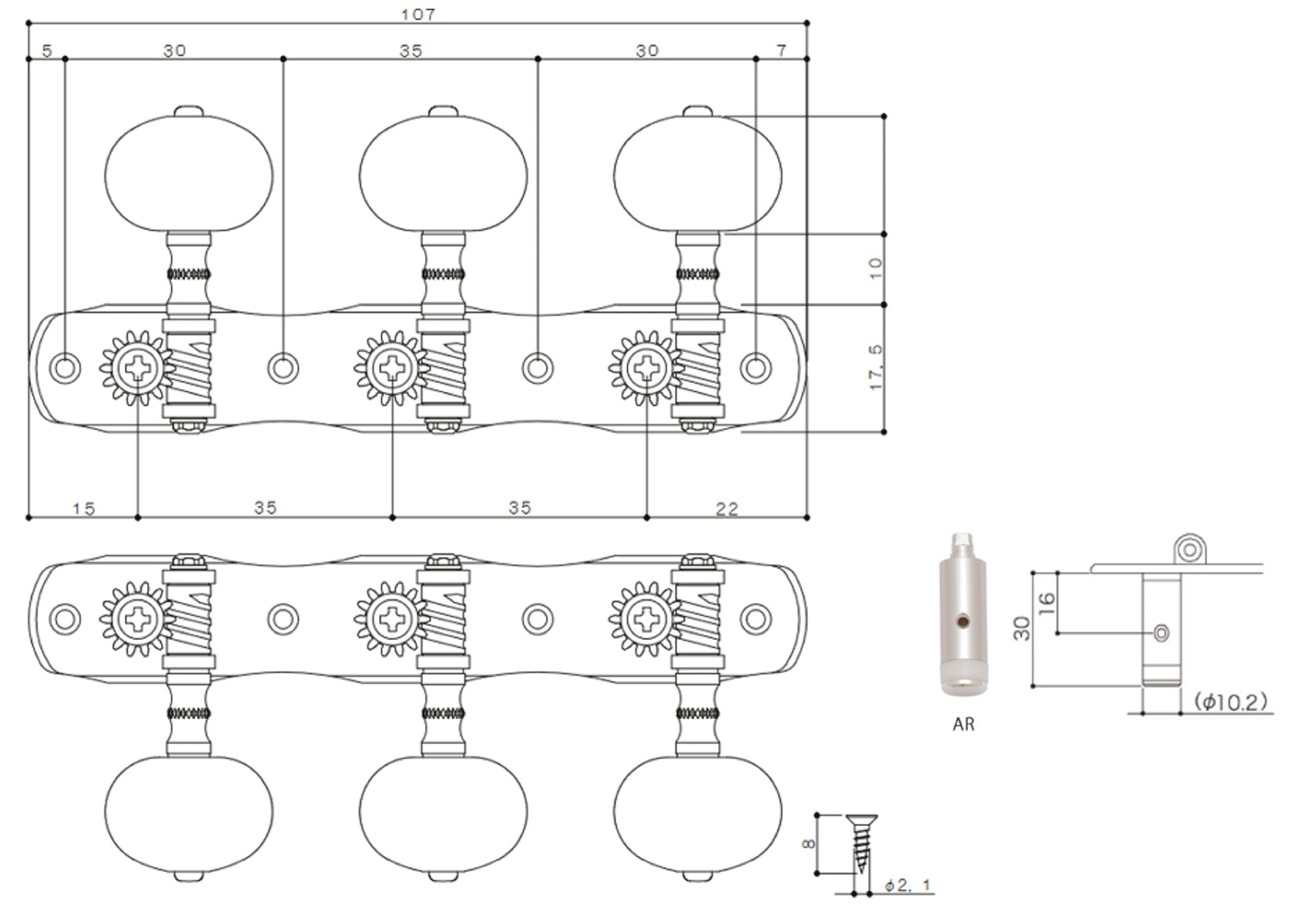 Gotoh 35ARB1800(SB)BB Tuners with 10mm Black Aluminium Rollers for Acoustic Guitars (Solid Brass)