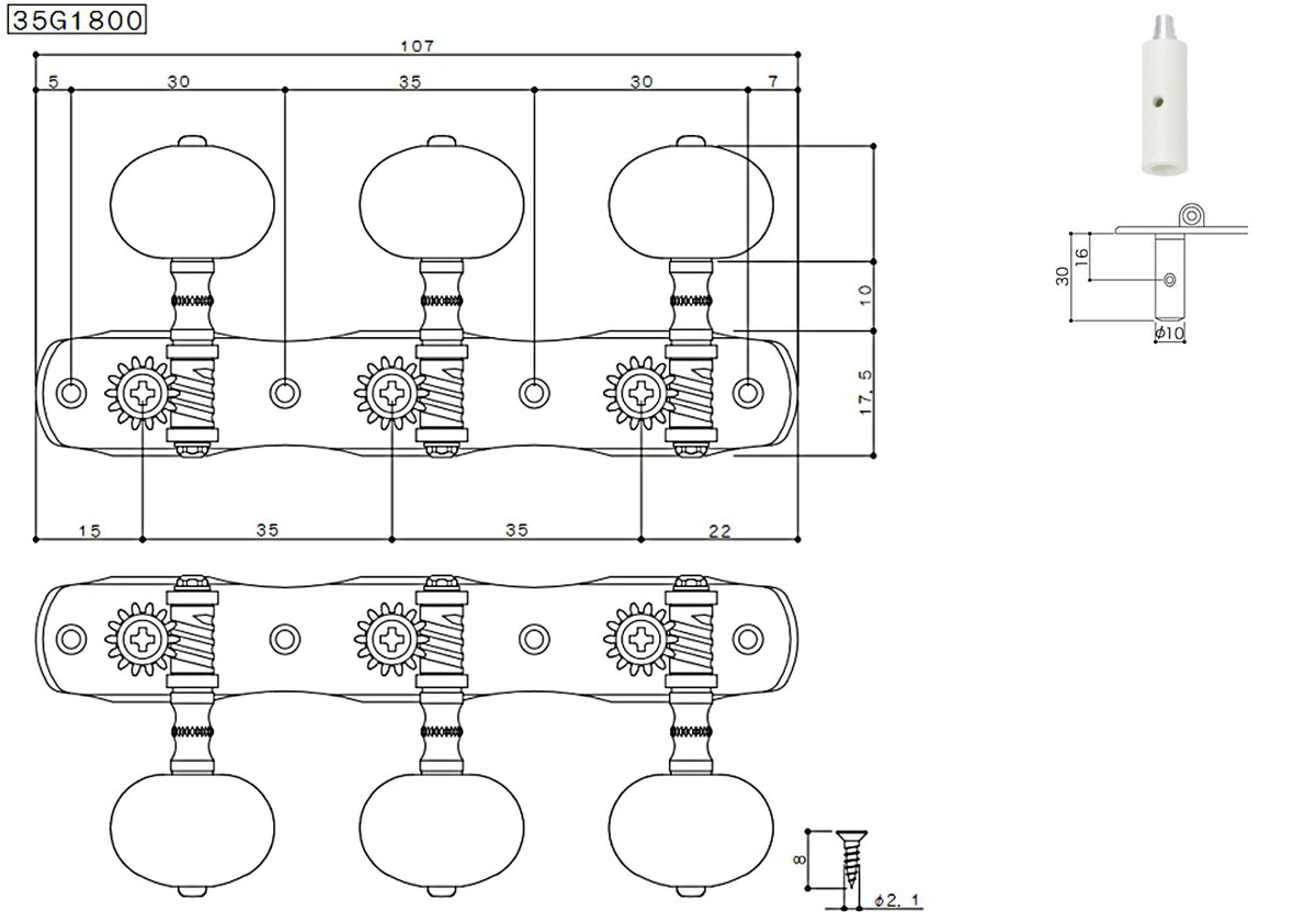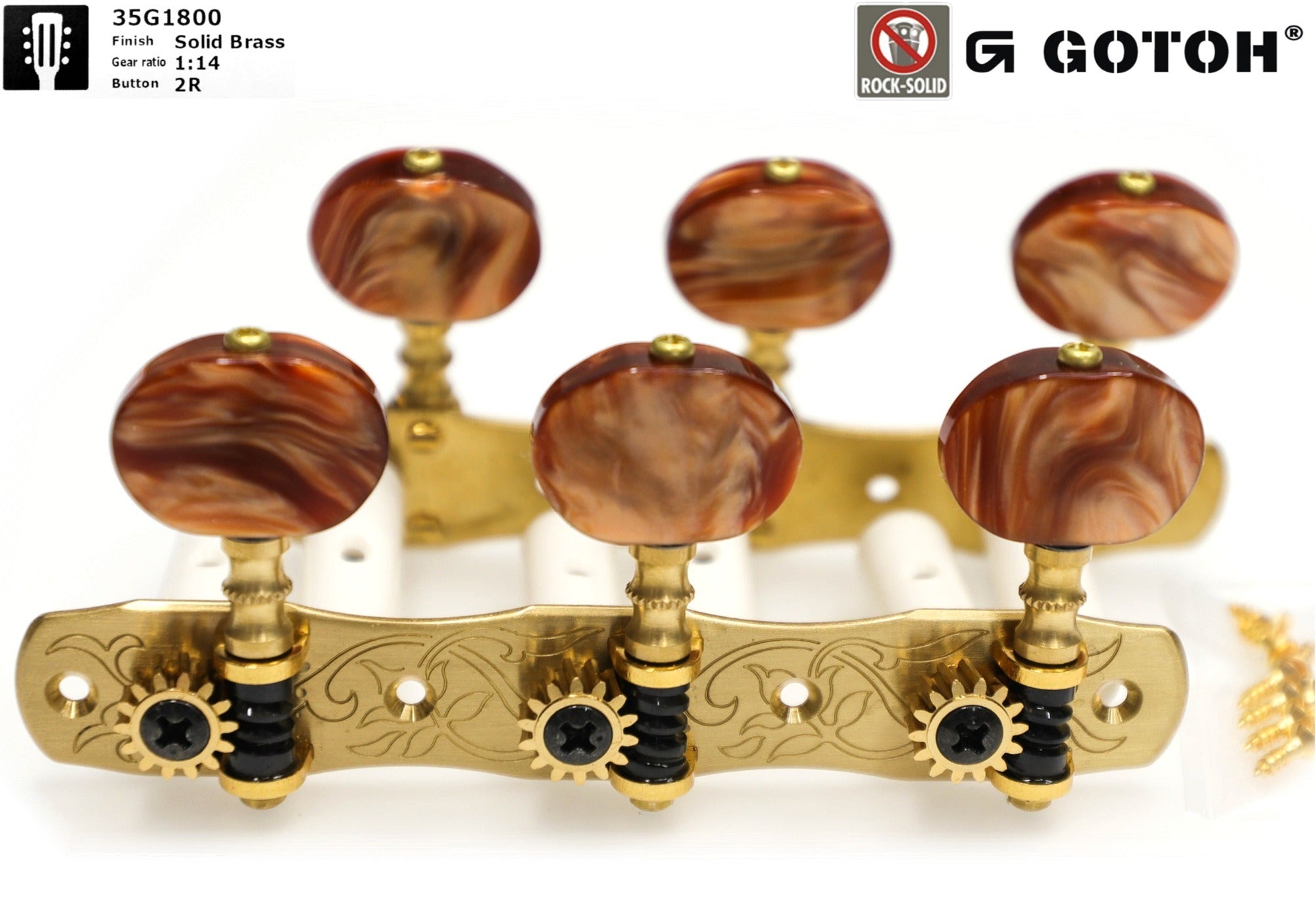 Gotoh 35G1800(SB)2R Tuners with 10mm Plastic Rollers for Acoustic Guitars (Solid Brass)