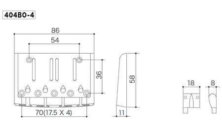 Gotoh 404BO-4(CK) Bass Bridge Saddle, 4-string (Cosmo Black)