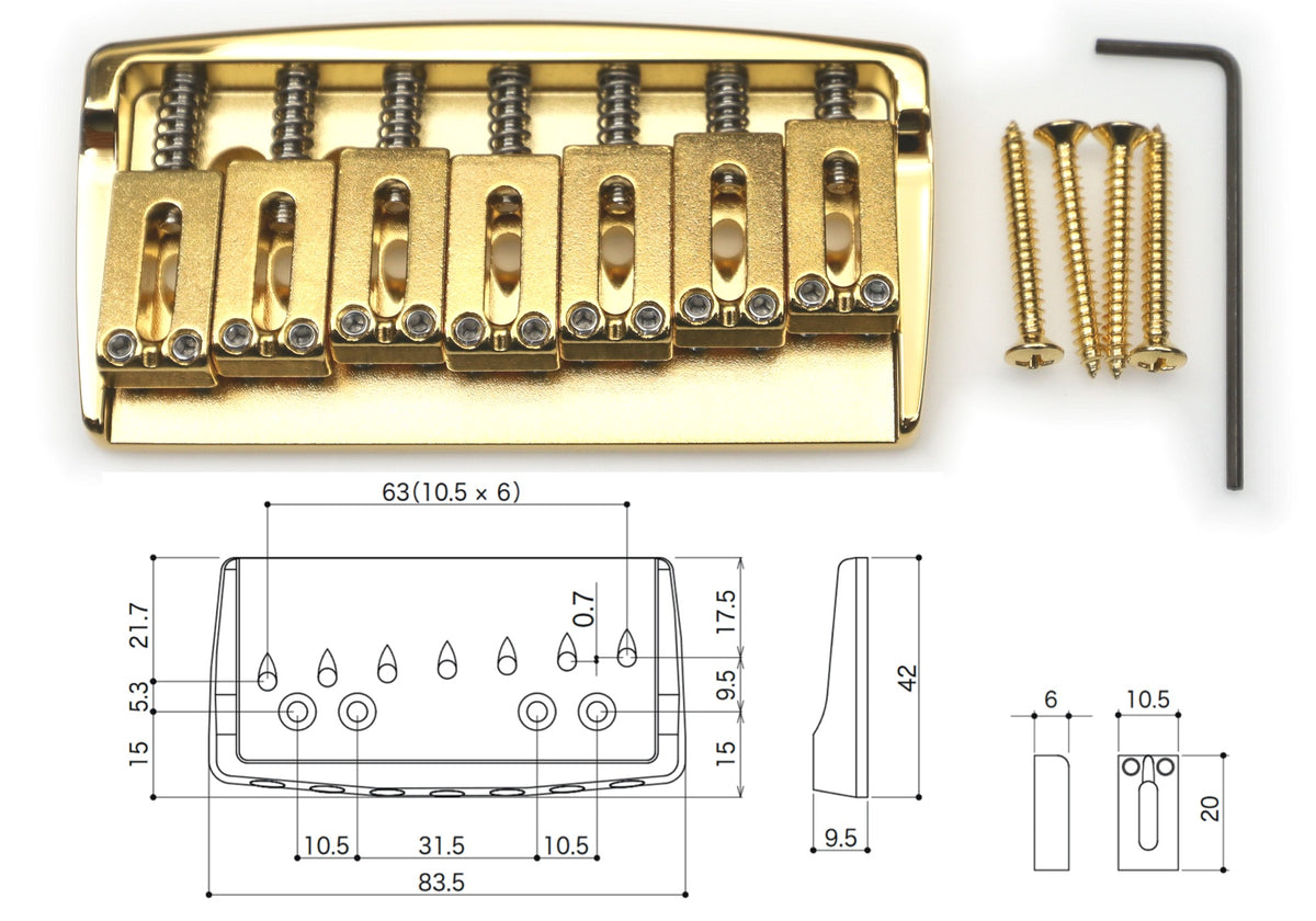 Gotoh 510FX-7 Hardtail Solid Brass, with 10.5mm Steel Saddles, 7-strings (choose finish)