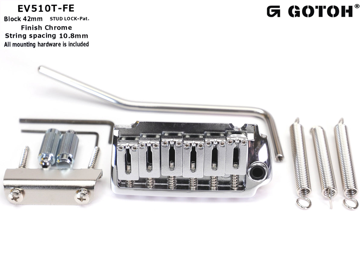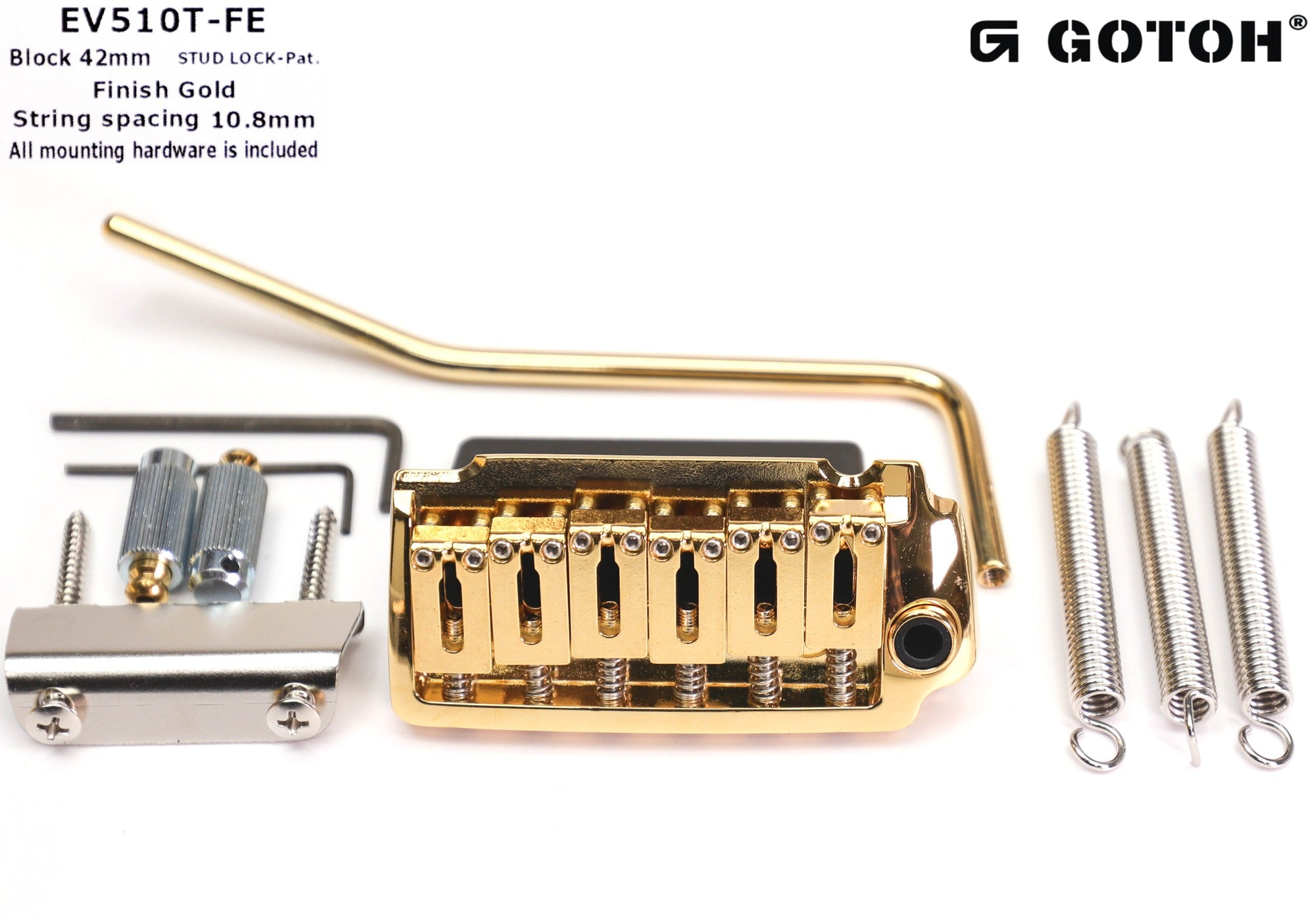 Gotoh EV510T-FE Tremolo Bridge (Steel, 42mm block) 2-point locking stud + anchor (choose finish)