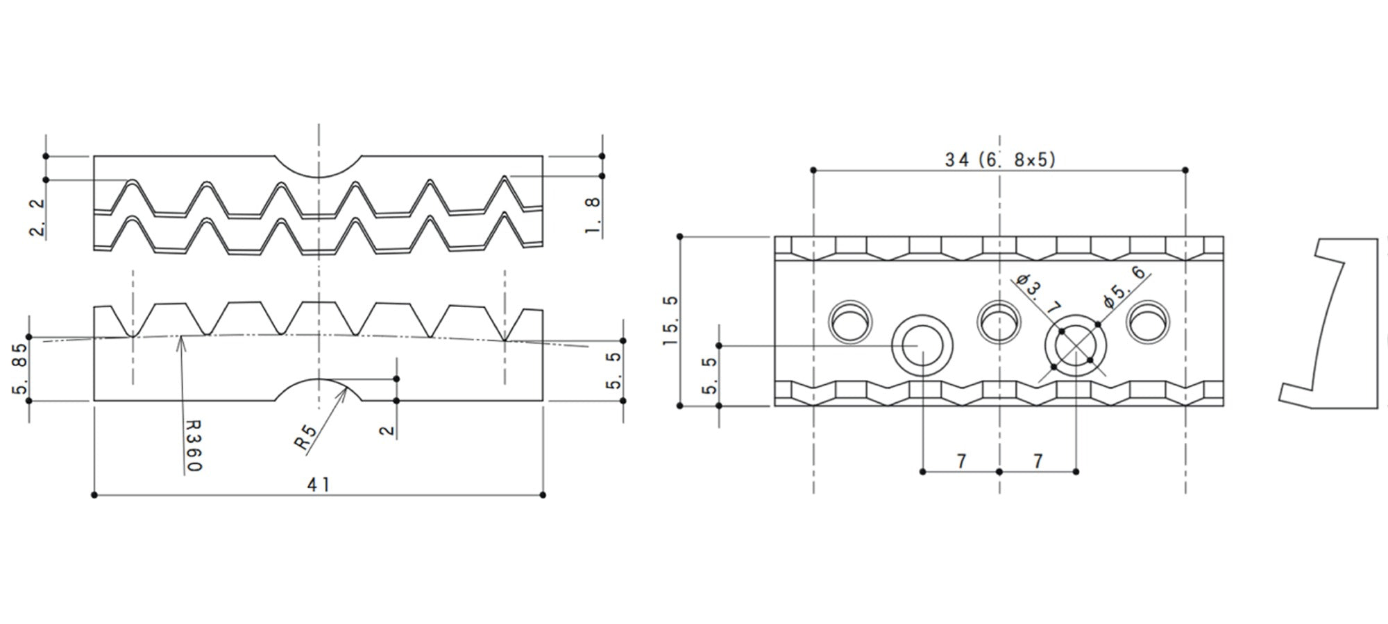 1-5/8"(R2) 41mm width, 360mm (14 3/16") radius
