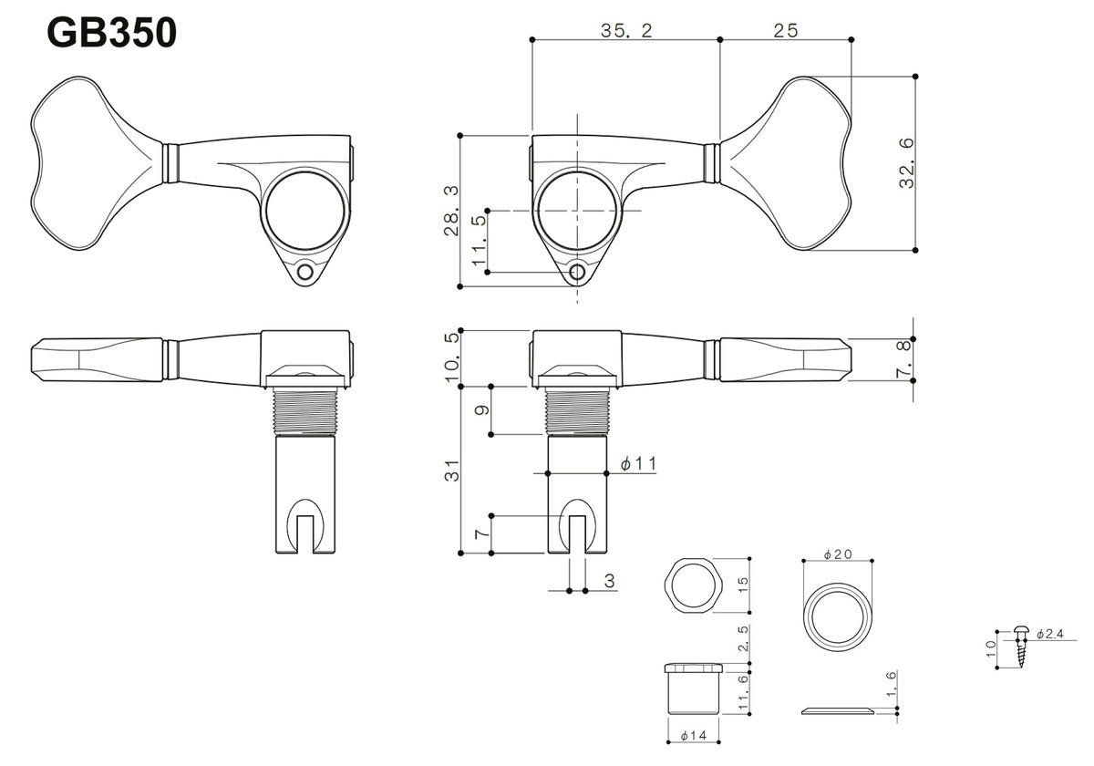 Gotoh GB350(xN) Res-o-Lite Compact Bass Tuners, 2x2 (X-Finish Nickel)