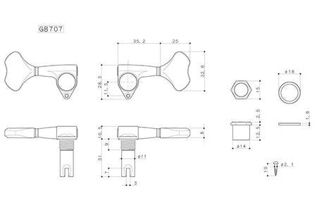 Use this tuner on guitars with inline pegs, or combine it with our GB707(G) tuners to achieve any configuration you desire (2+2, 2+3, 3+3, etc.).