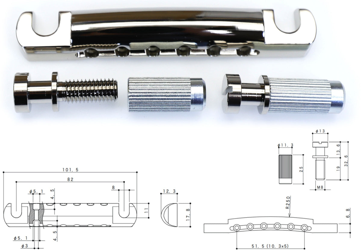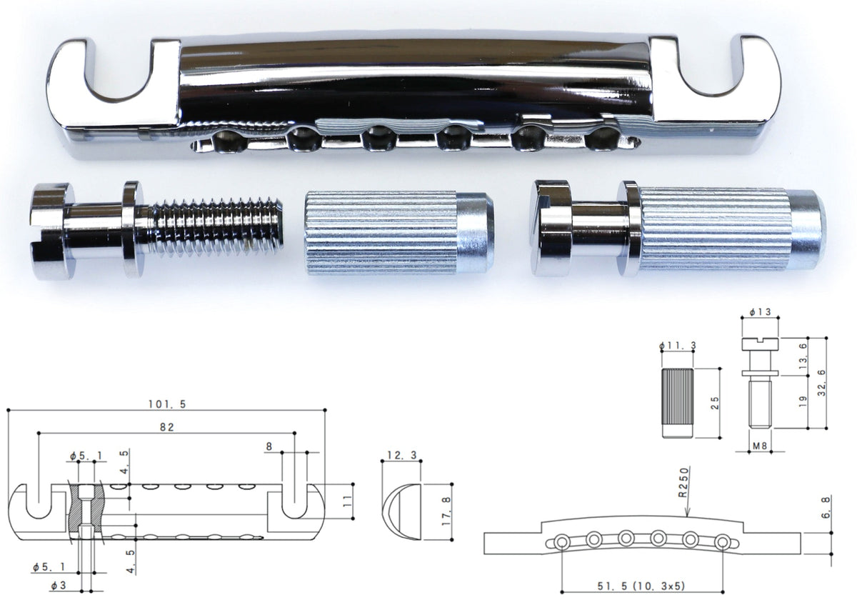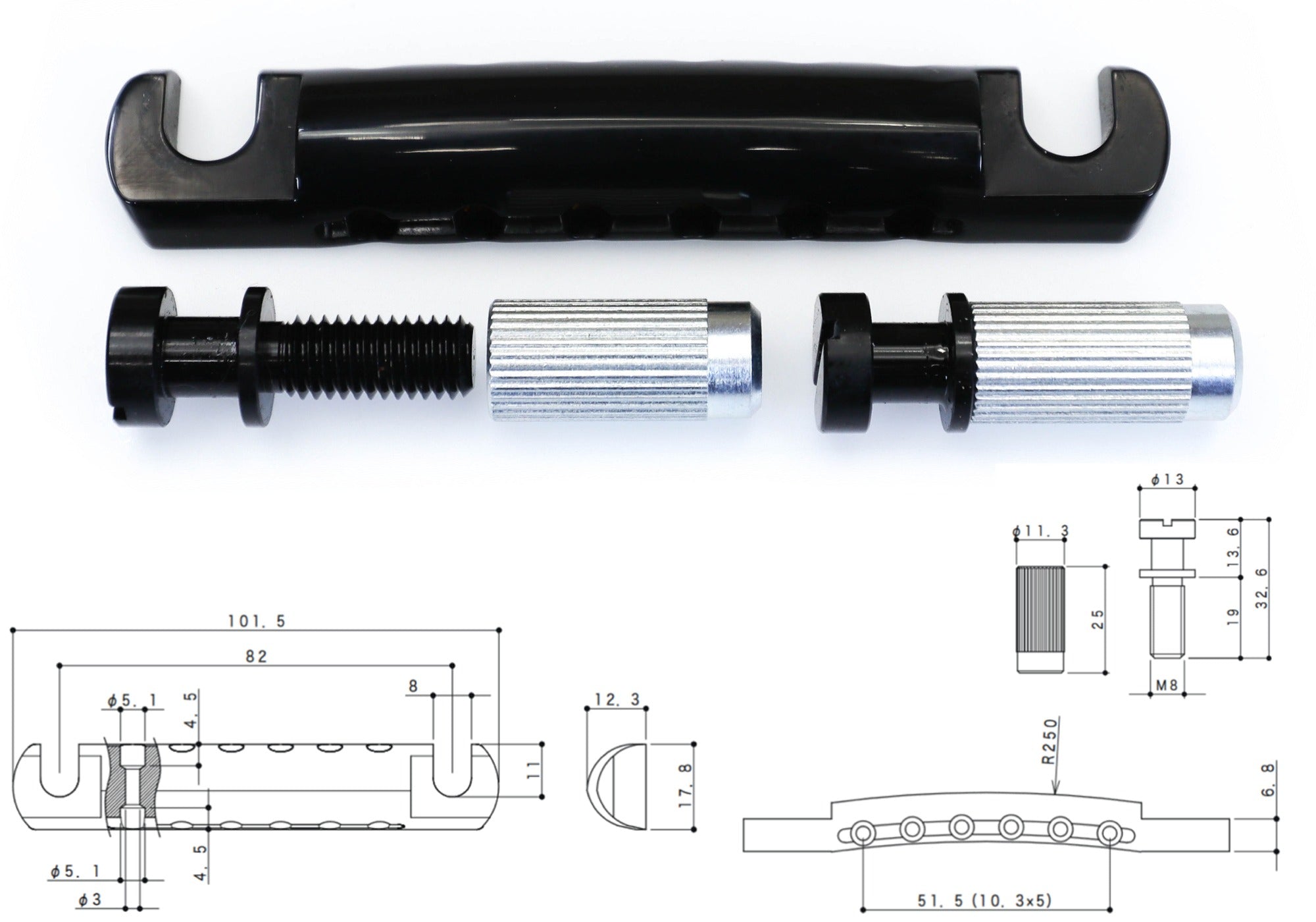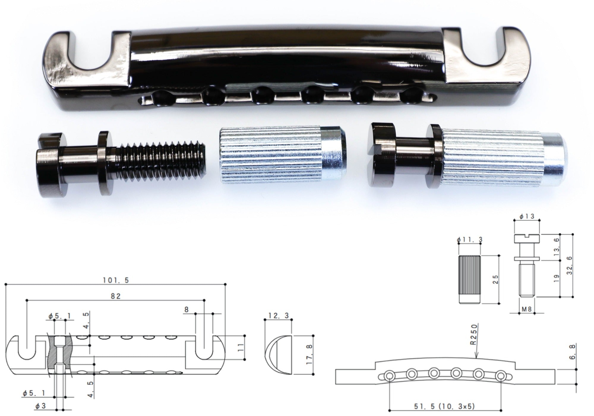 Gotoh GE101A Height-Adjustable Vintage Stop Tailpiece (chose finish)