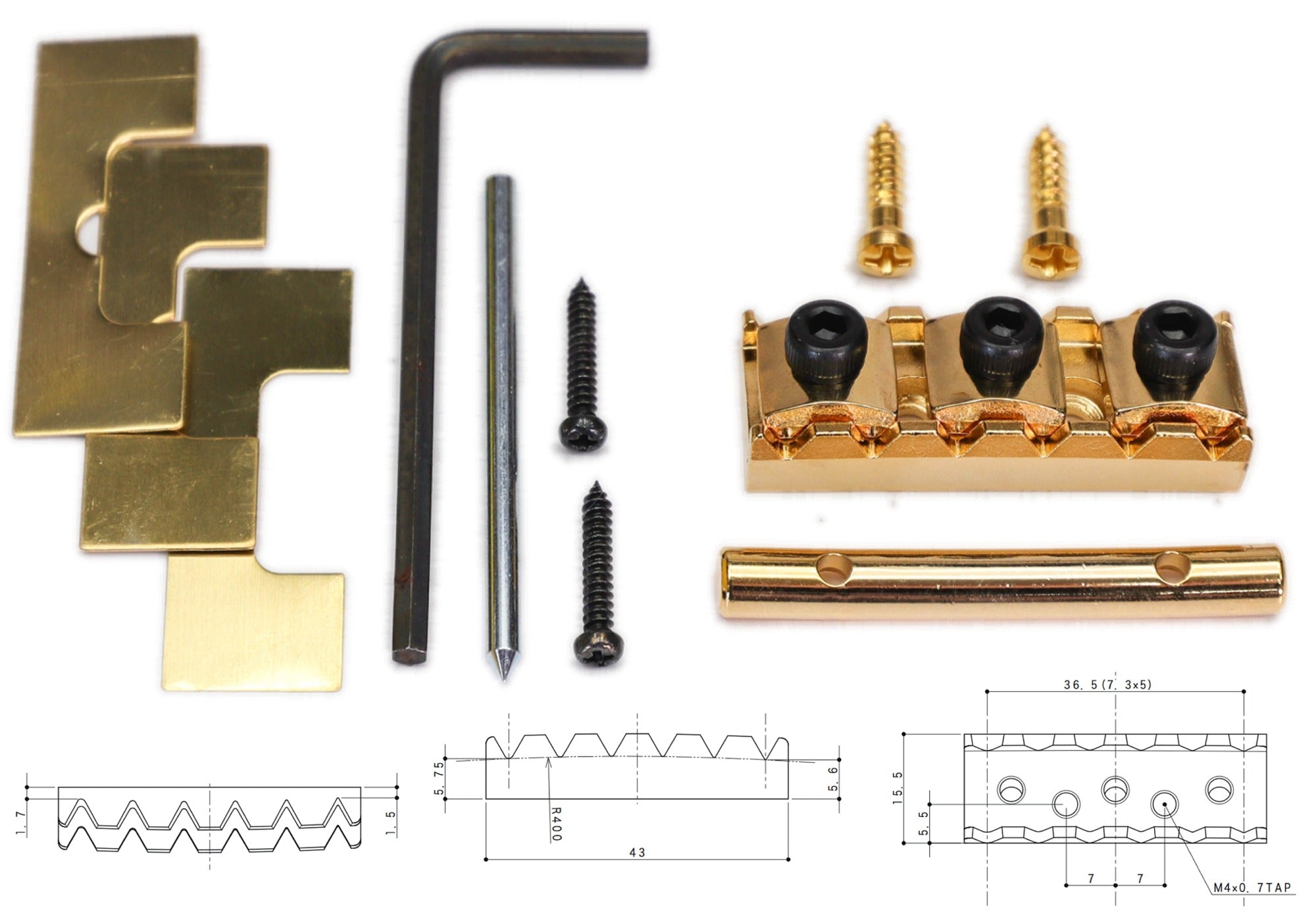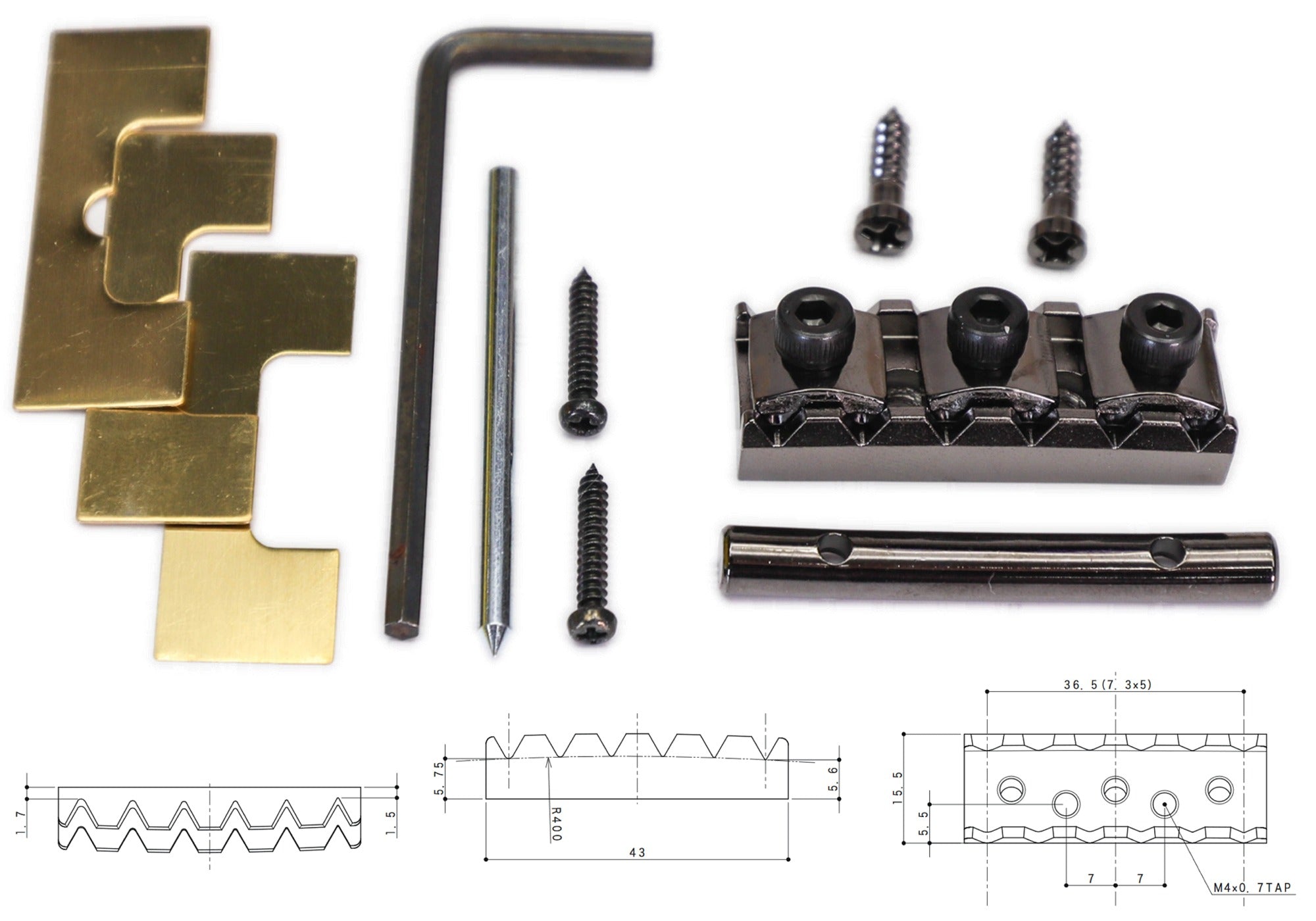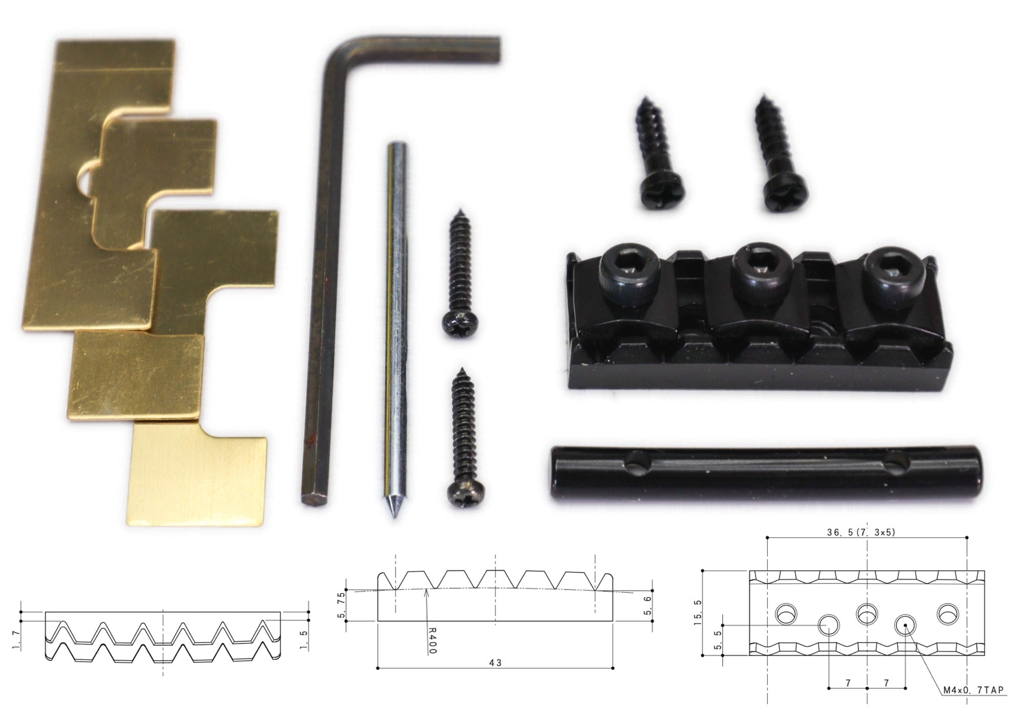 Package includes tension bar + mounting screws + brass shims + hex wrench.