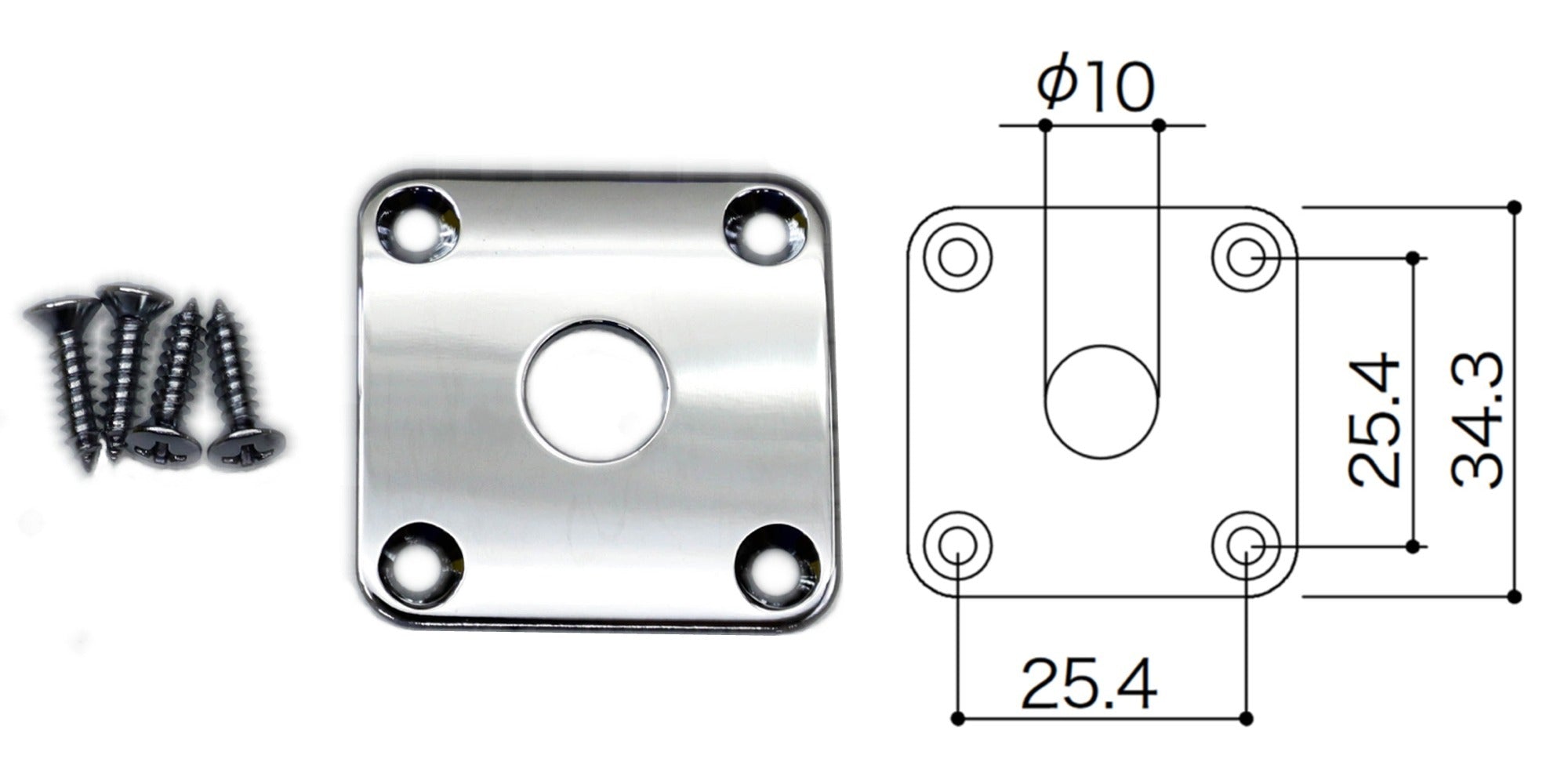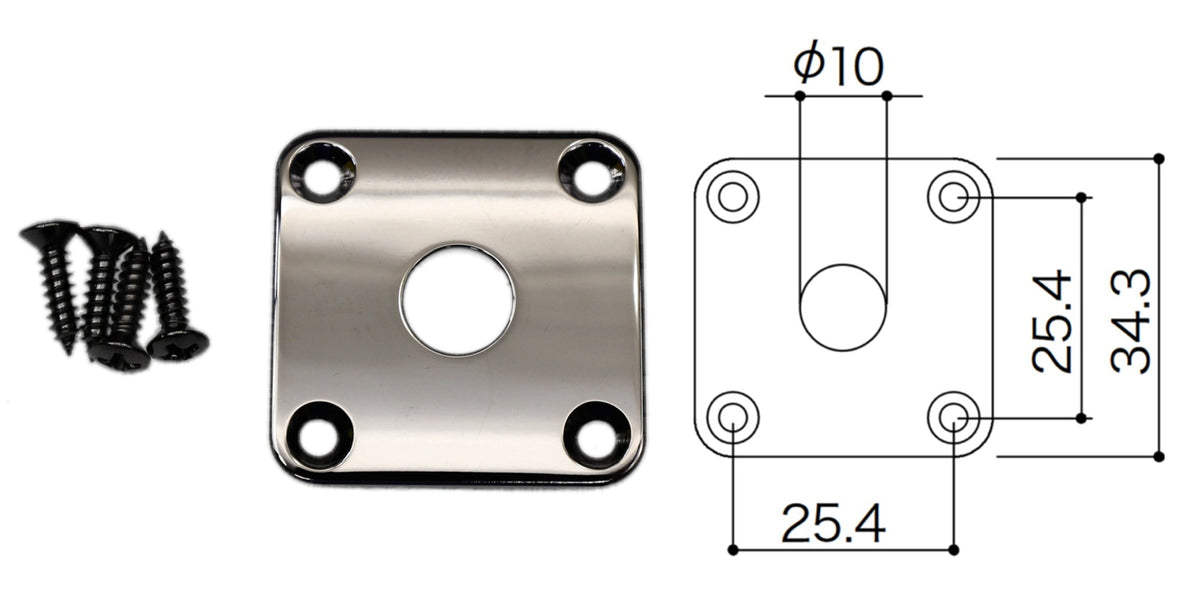 Fits standard 1/4" output jacks, 25.4mm (1") mounting hole spacing.