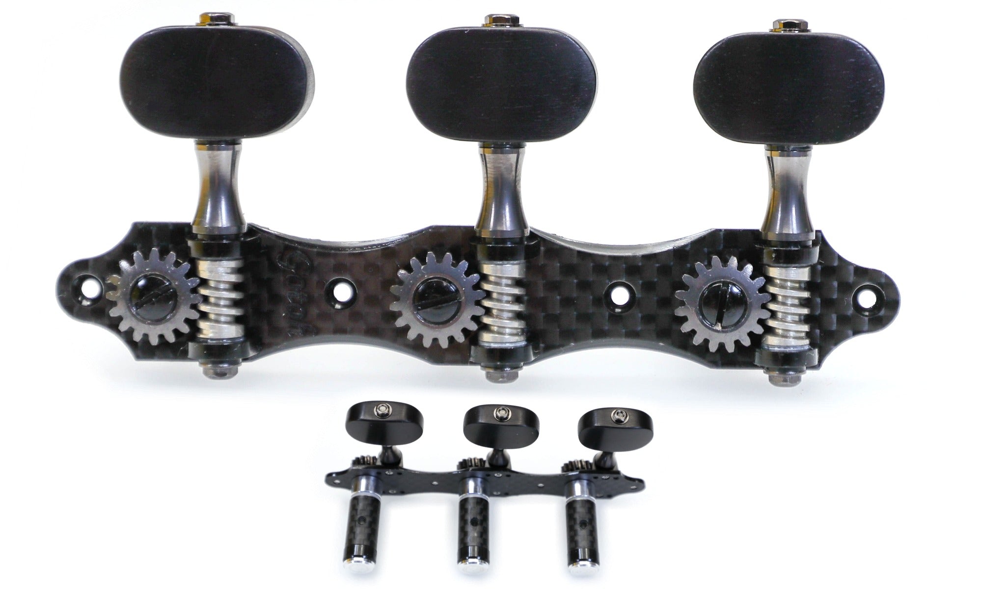 Set of Premium Lubri-Plated Gotoh KG01 series tuners, Carbon Fiber plate, Ebony Wood knobs, Aluminum & Carbon Tube Shaft Rollers, complete set.