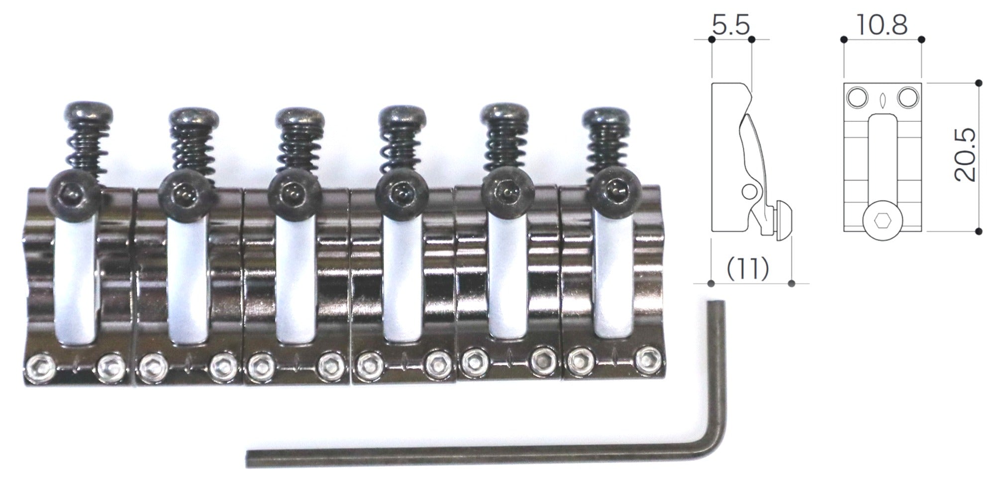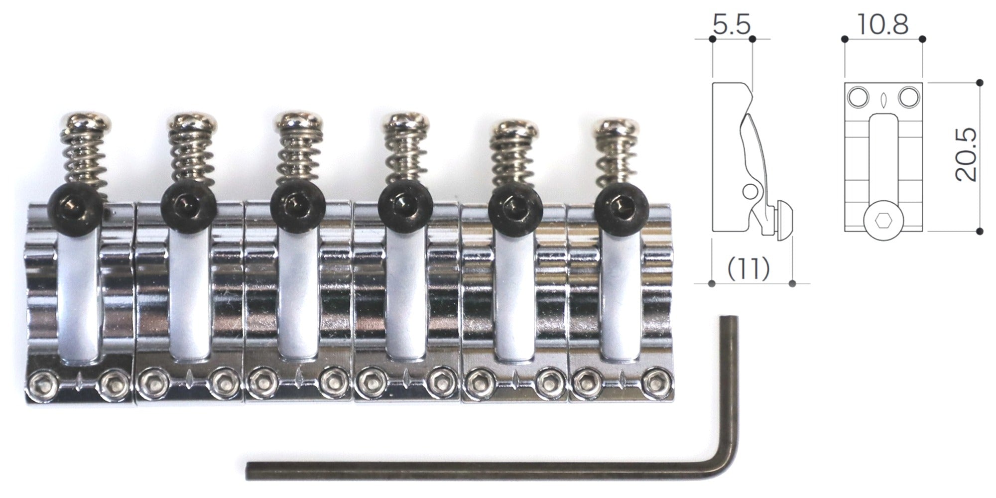 6 piece GOTOH LS108 Steel Locking Saddle Set for GOTOH NS510T, NS510TS, 510T, and 510TS tremolo bridges.