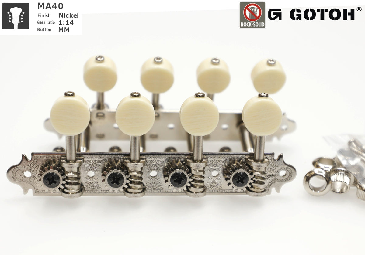 Mandolin Tuners, A-style Gotoh MA40(N)MM with Metal Rollers (Nickel)