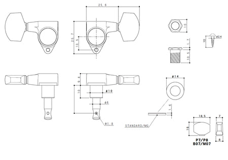 Gotoh SG301(B)B07 Tuners with Standard Post, 3L+3R (Black)
