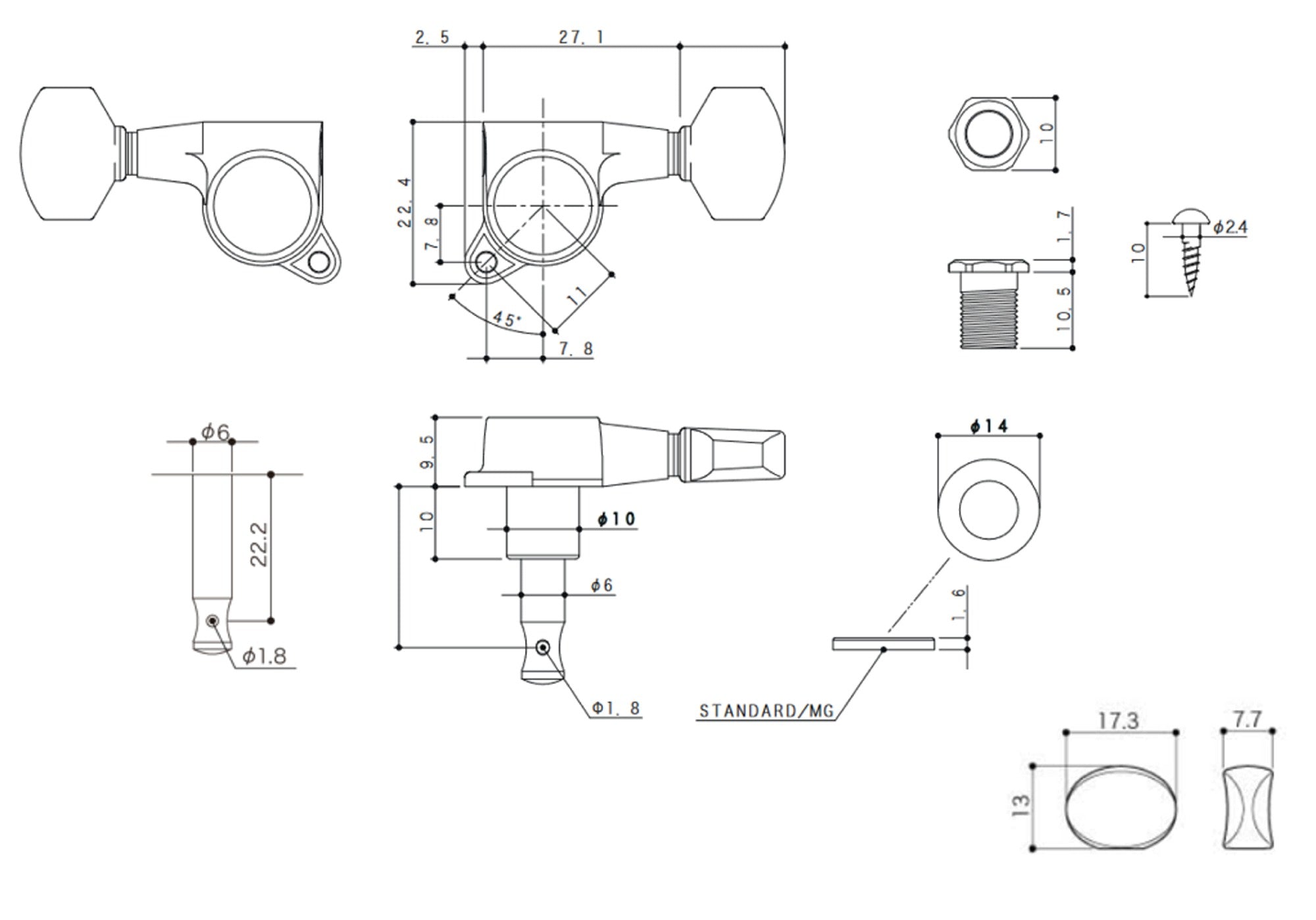 Gotoh SG381(B)05 Tuners with Standard Post, 3L+3R (Black)