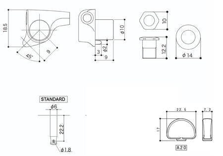 Gotoh SGi510(B)A20 Super-Mini Tuners with Standard Post, 3L+3R (Black)