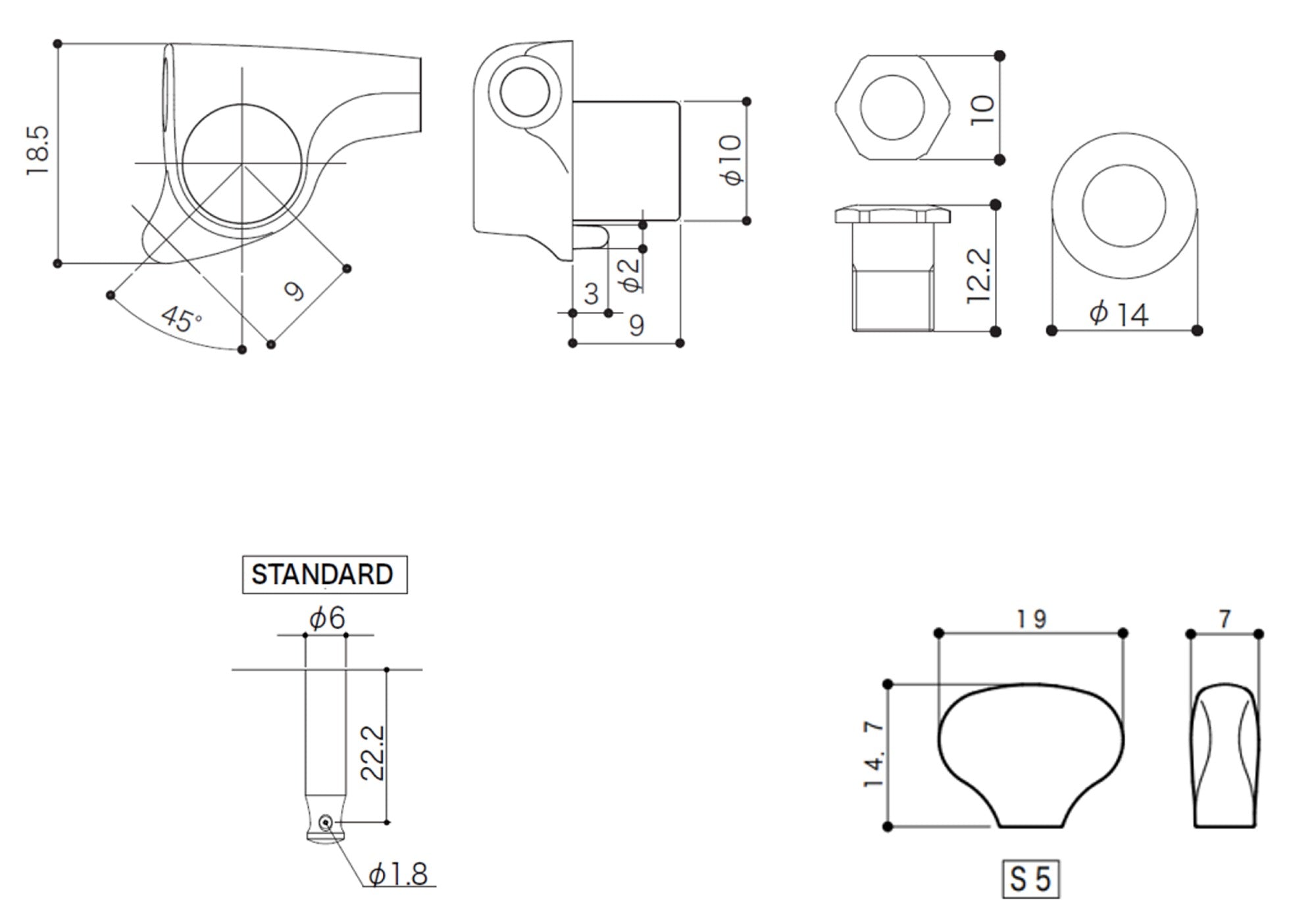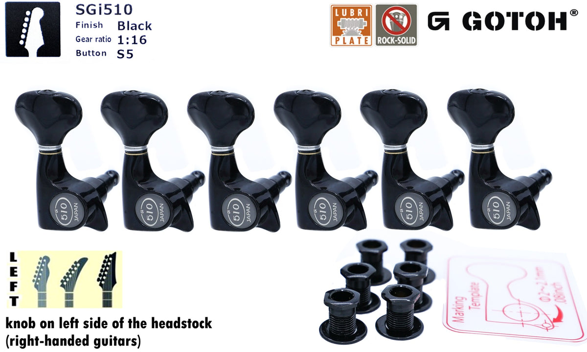 Gotoh SGi510(B)S5 Super-Mini Tuners with Standard Post, 6-Left (Black)