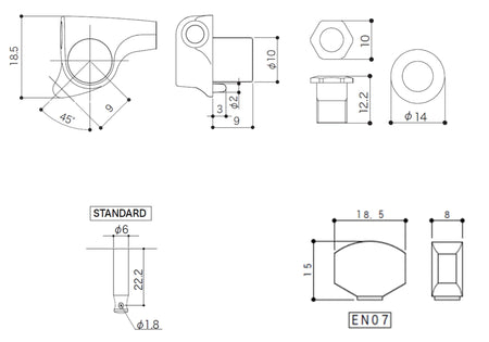 Gotoh SGi510(G)EN07 Super-Mini Tuners with Standard Post, 6-Left (Gold, Ebony Knobs)