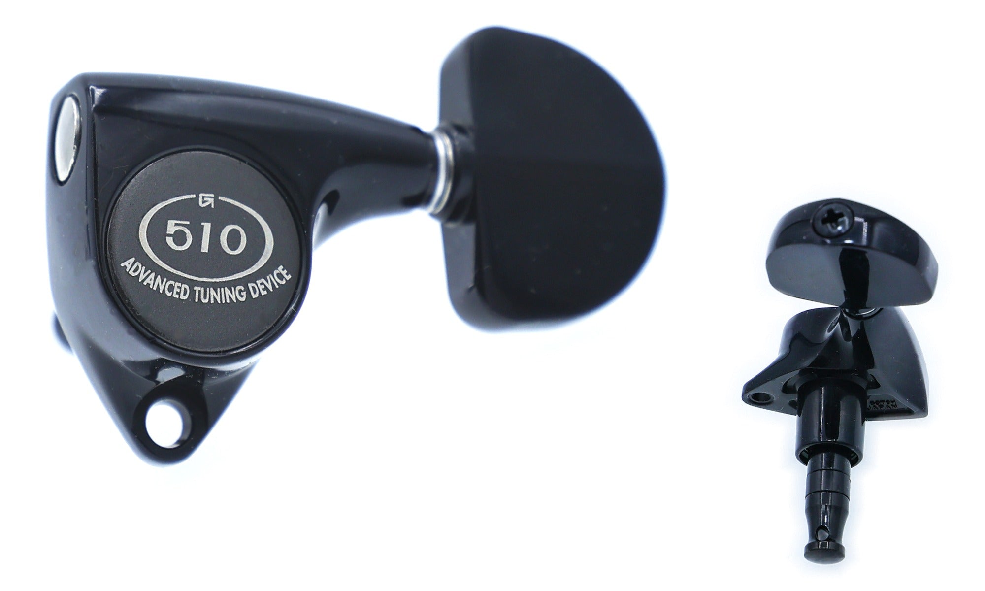 Set of six Premium Lubri-Plated Gotoh SGV510 series sealed-gear tuners (3L+3R), Black finish, Metal knobs.