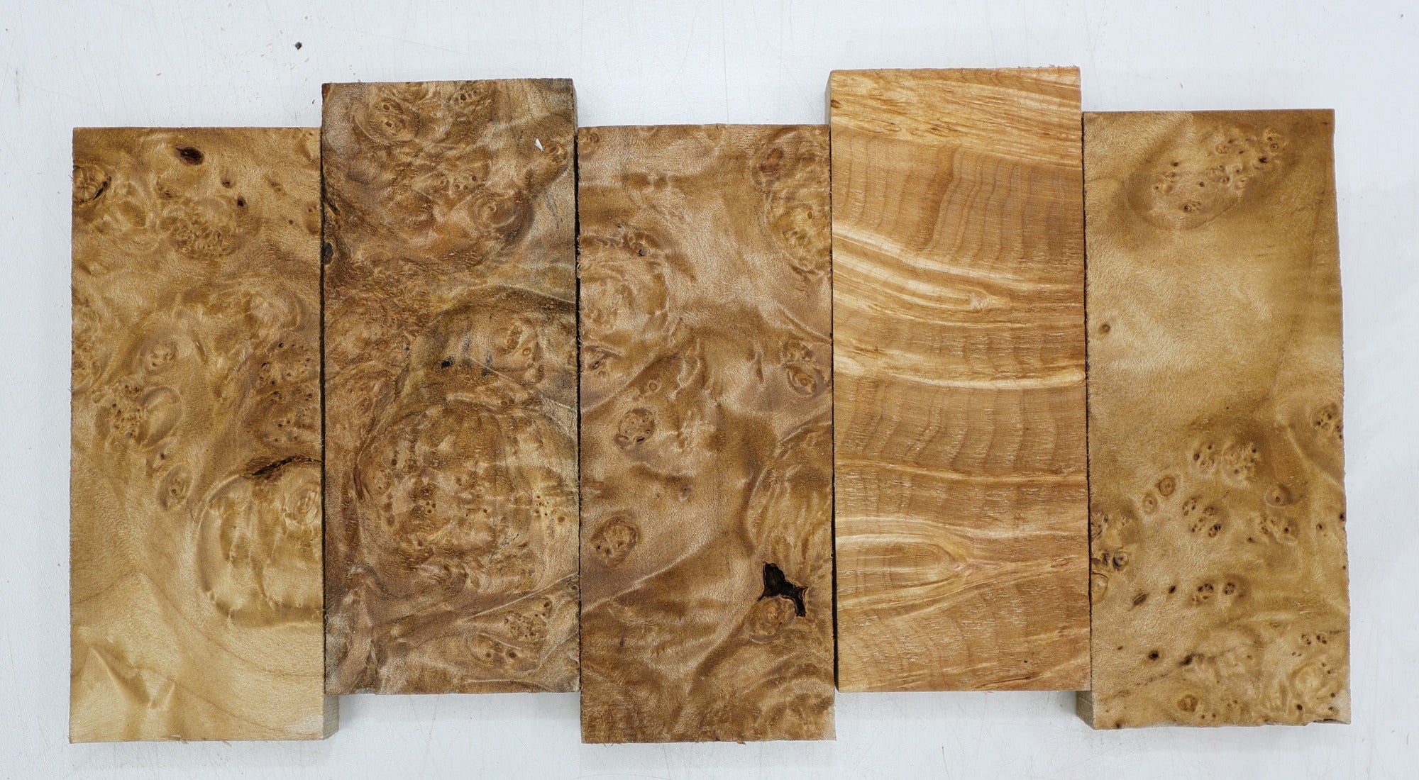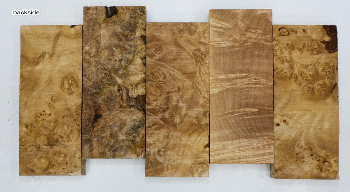 Maple Burl Knife Scales, 5 pieces, 0.7" x 2" x 5" each (HIGH FIGURE) - Stock# 6-3771
