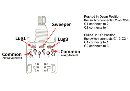 Push/Pull DPDT Control Potentiometer, 500K Audio Taper (inch)