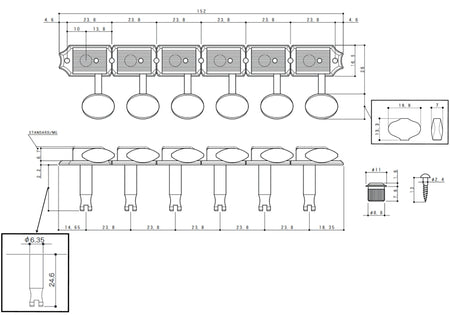 SD91(N)M6 Tuners with Standard Post, 6-Left (Nickel)