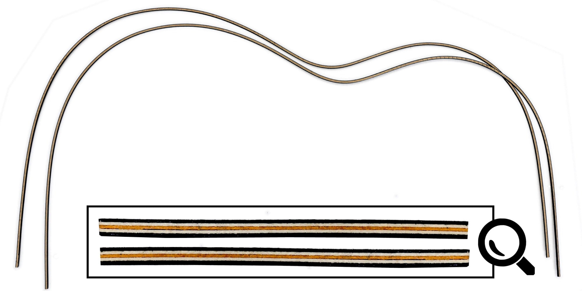 Guitar Purfling (Wood) Pre-Bent 2 piece set, Classical, Black/White/Orange