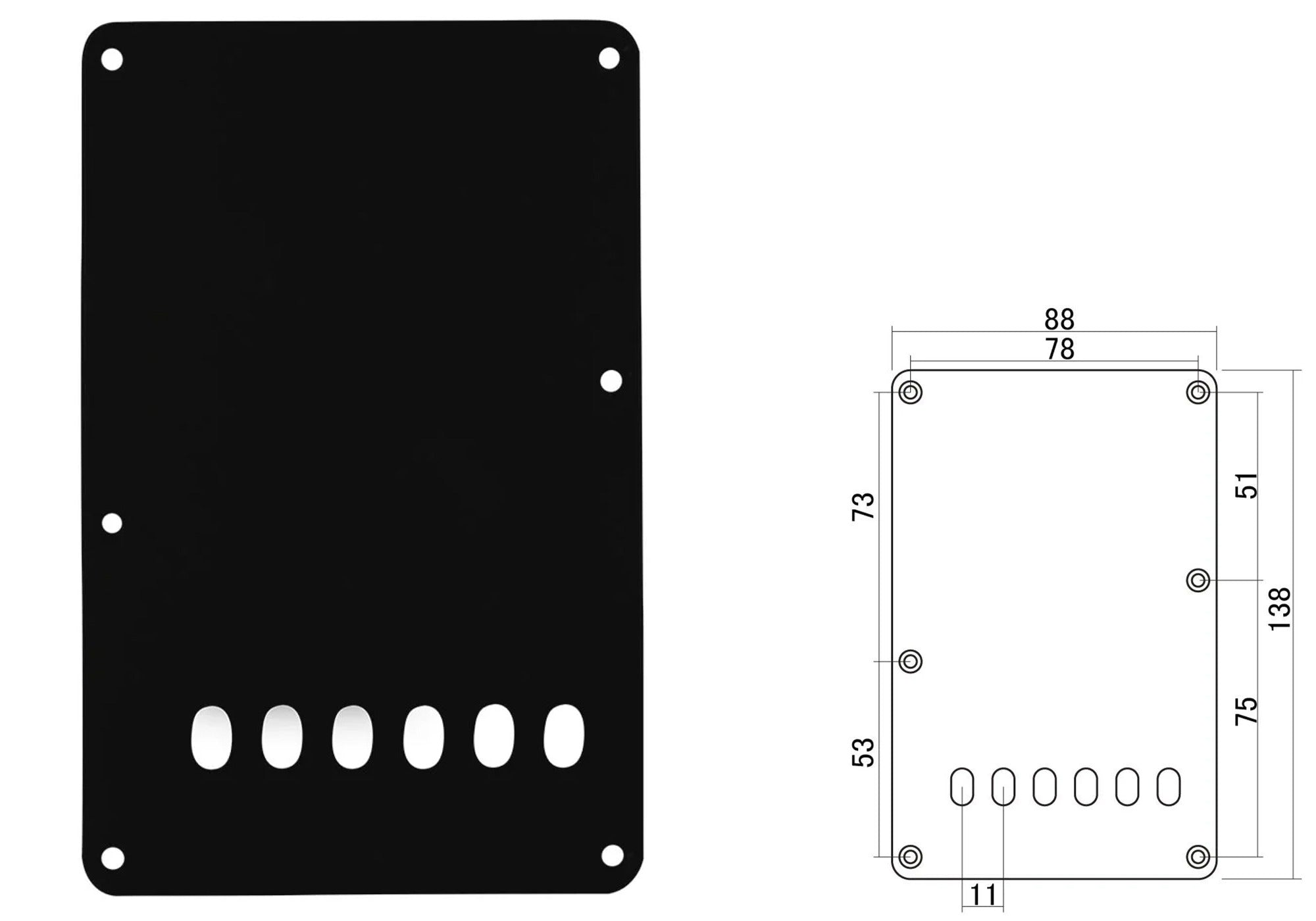 Backplate Cover For Strat Guitars with 55mm String Spacing (11mm x 5), Black