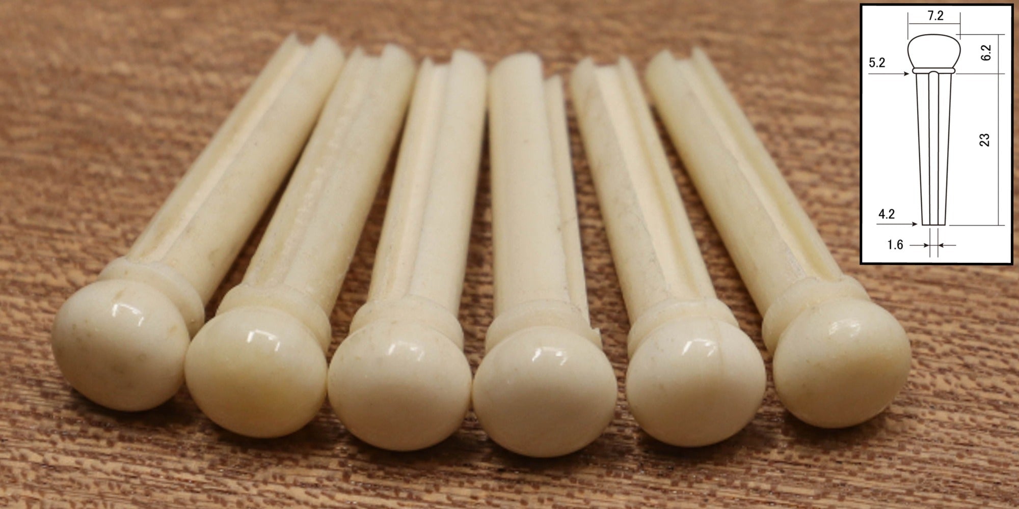 Bridge Pins, Cattle Bone, set of 6 slotted