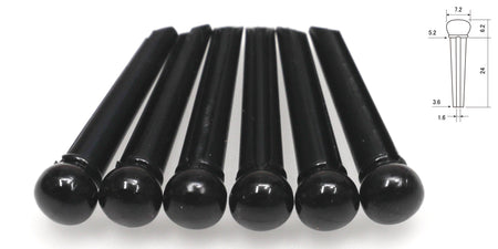Bridge Pins, Plastic, set of 6 slotted, Black