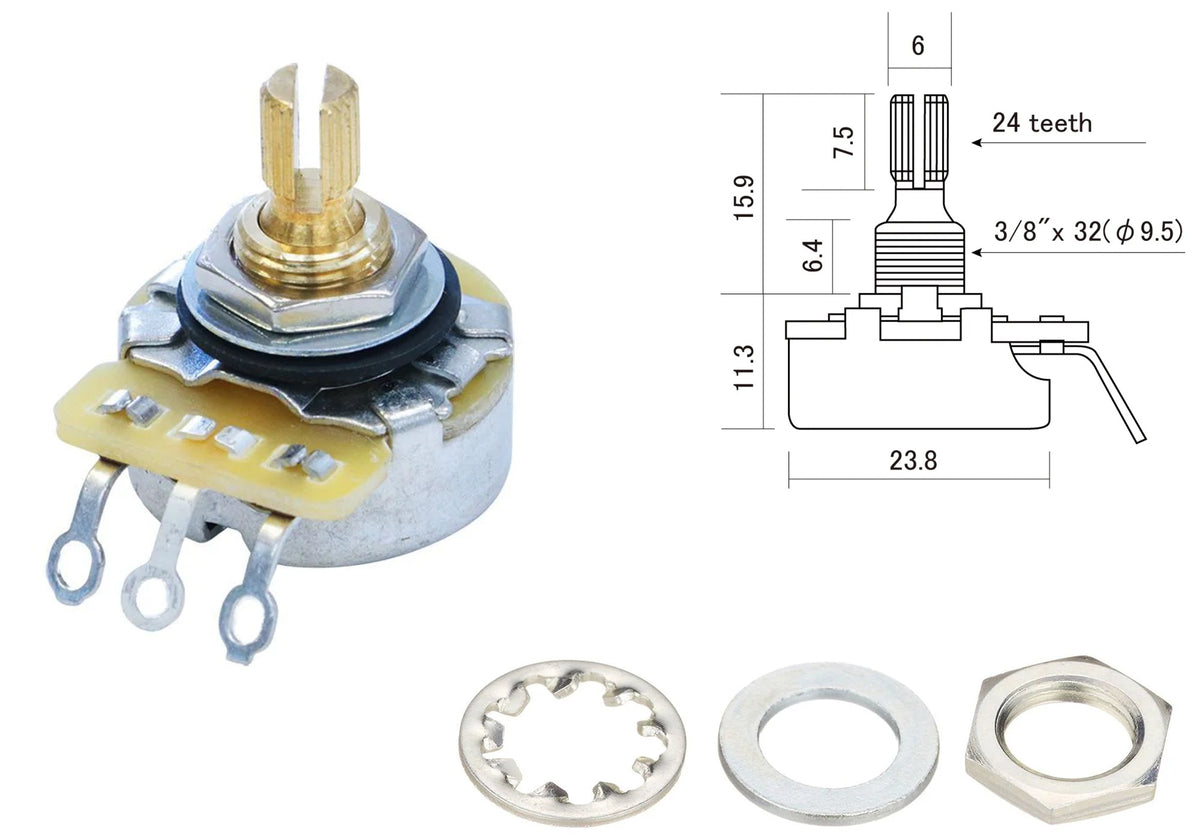 CTS Control Potentiometer, 500K Linear Taper, Short 15.9mm Shaft (inch)