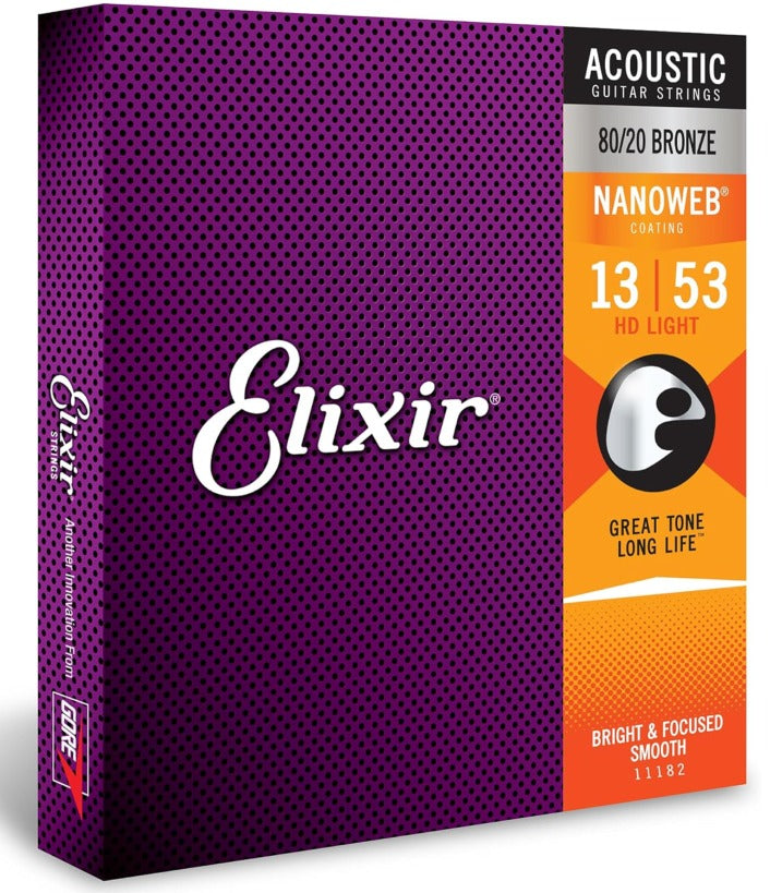 Elixir Acoustic Guitar Strings, 80/20 Bronze Nanoweb Coated, HD Light 11182 (13-53)