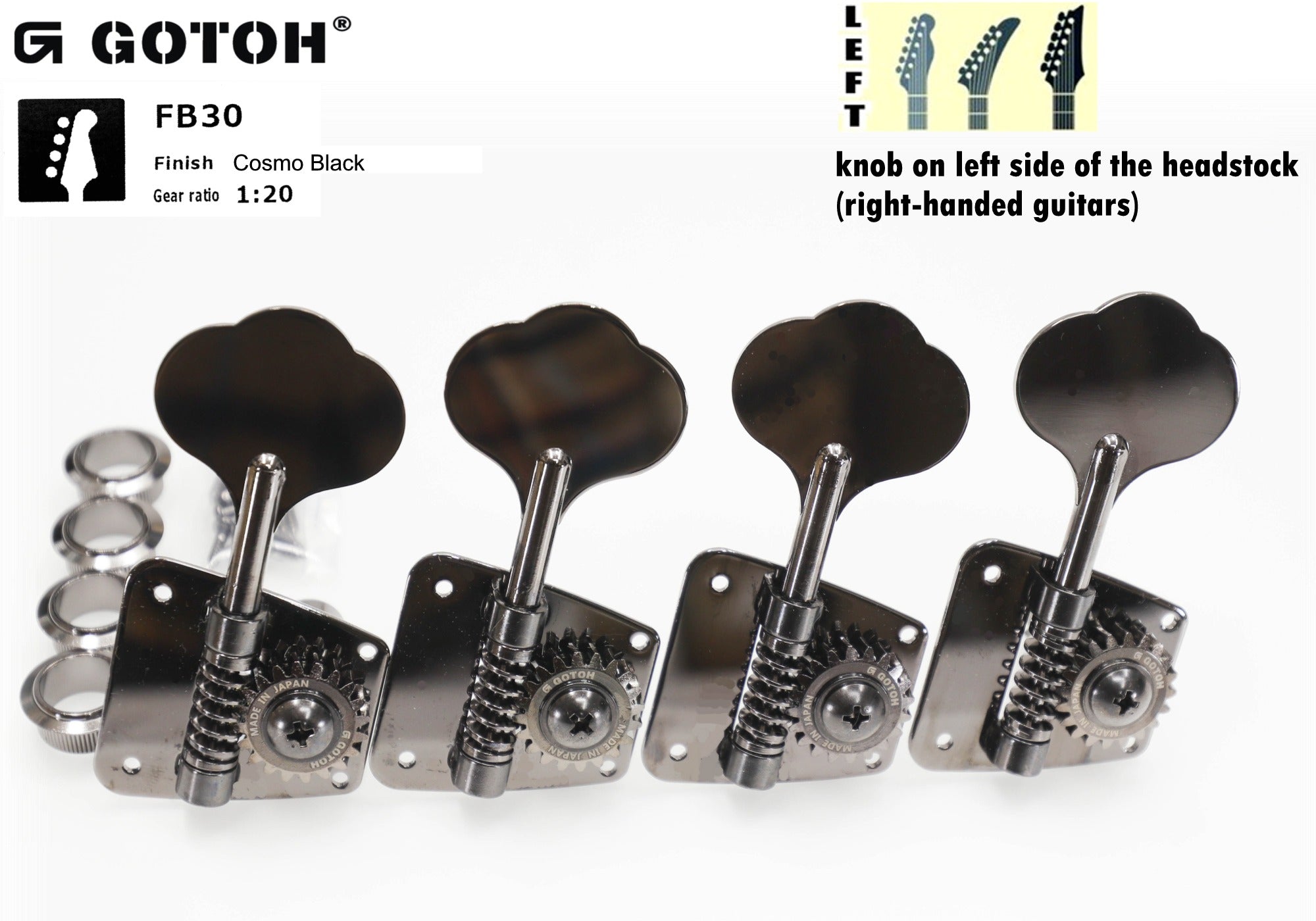 Gotoh FB30(CK) Bass Tuners, 4-Left (Cosmo Black)