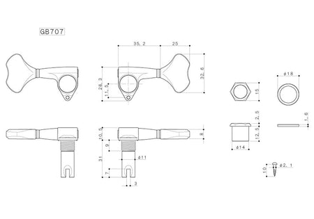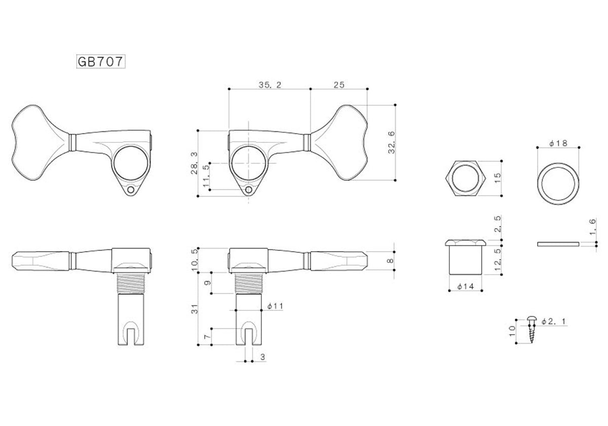 Use this tuner on guitars with inline pegs, or combine it with our GB707(B) tuners to achieve any configuration you desire (2+2, 2+3, 3+3, etc.).