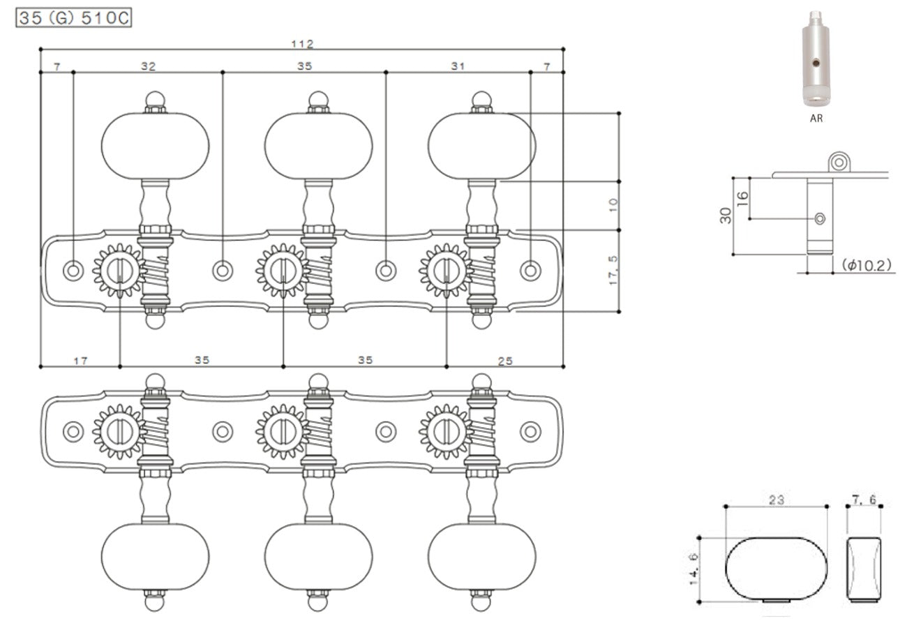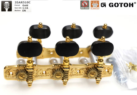 Set of Premium Lubri-Plated Gotoh 35G510 series tuners, Gold plate, Ebony Wood knobs, Aluminum Rollers, complete set.