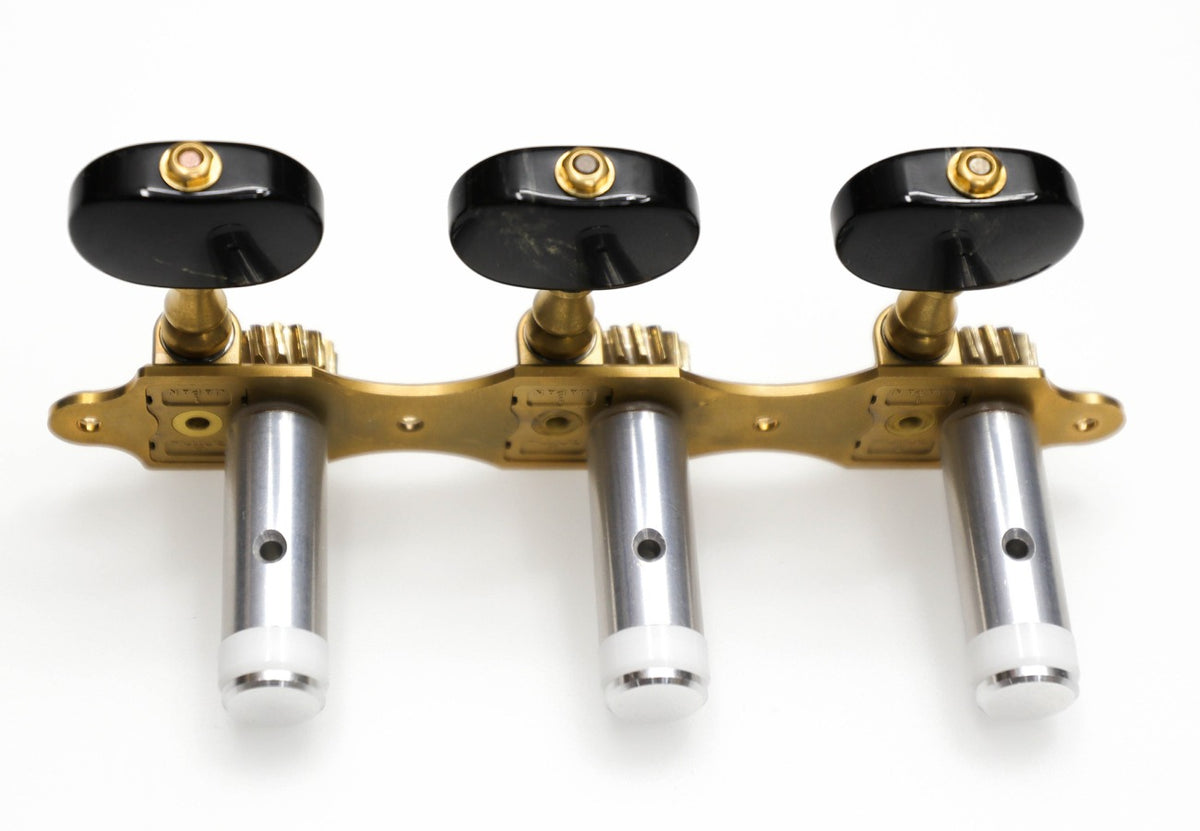 Set of Premium Lubri-Plated Gotoh 35G510 series tuners, Gold plate, Plastic Black knobs, Aluminum Rollers, complete set.