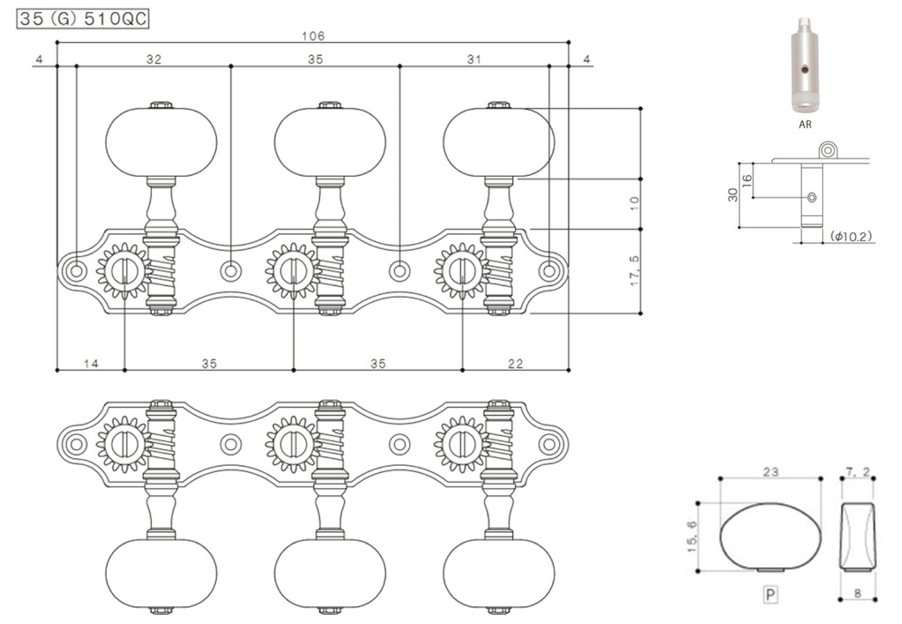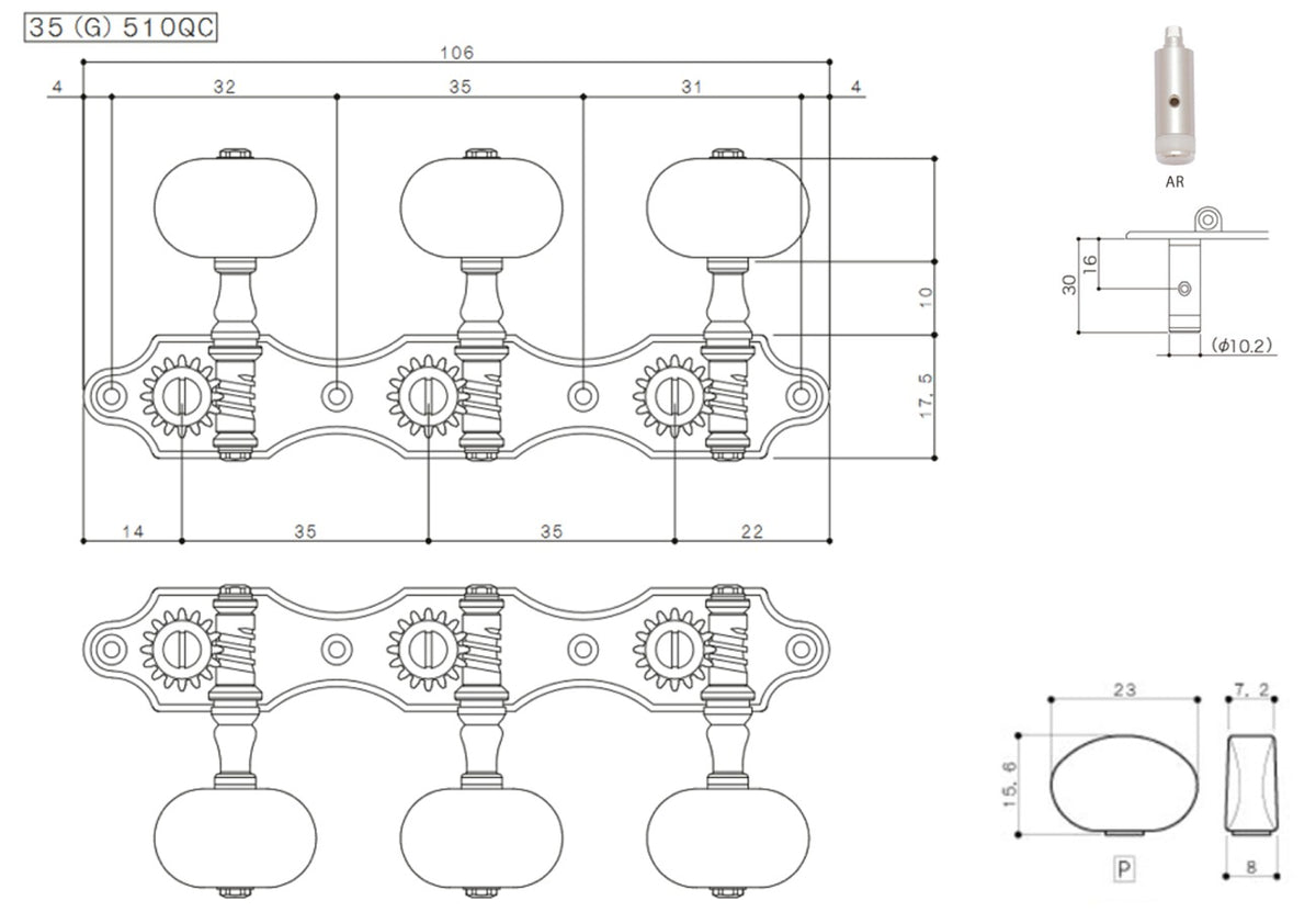 The rollers and knobs in the 35G510QC series are interchangeable (35AR,35ARB,35P) so any of the tuners listed in this lot can have their Knobs and Posts swapped to achieve the look you’re after – please don’t hesitate to ask us if you cannot find the right combination in stock.