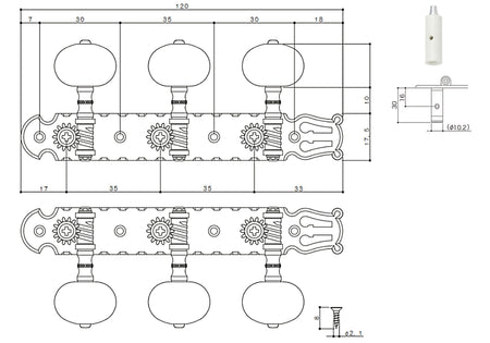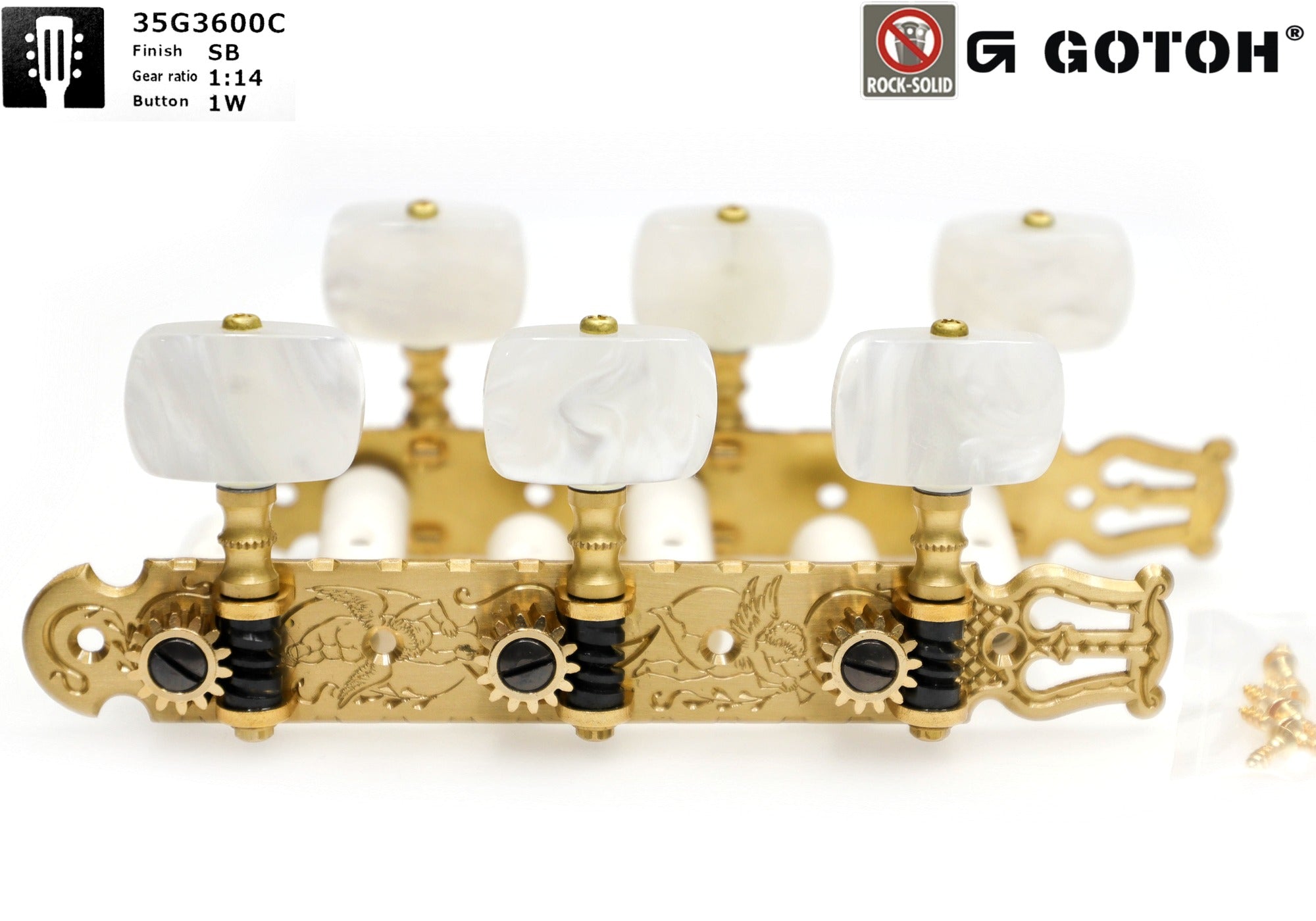 Gotoh 35G3600C(SB)1W Tuners with 10mm Plastic Rollers for Acoustic Guitars (Solid Brass)
