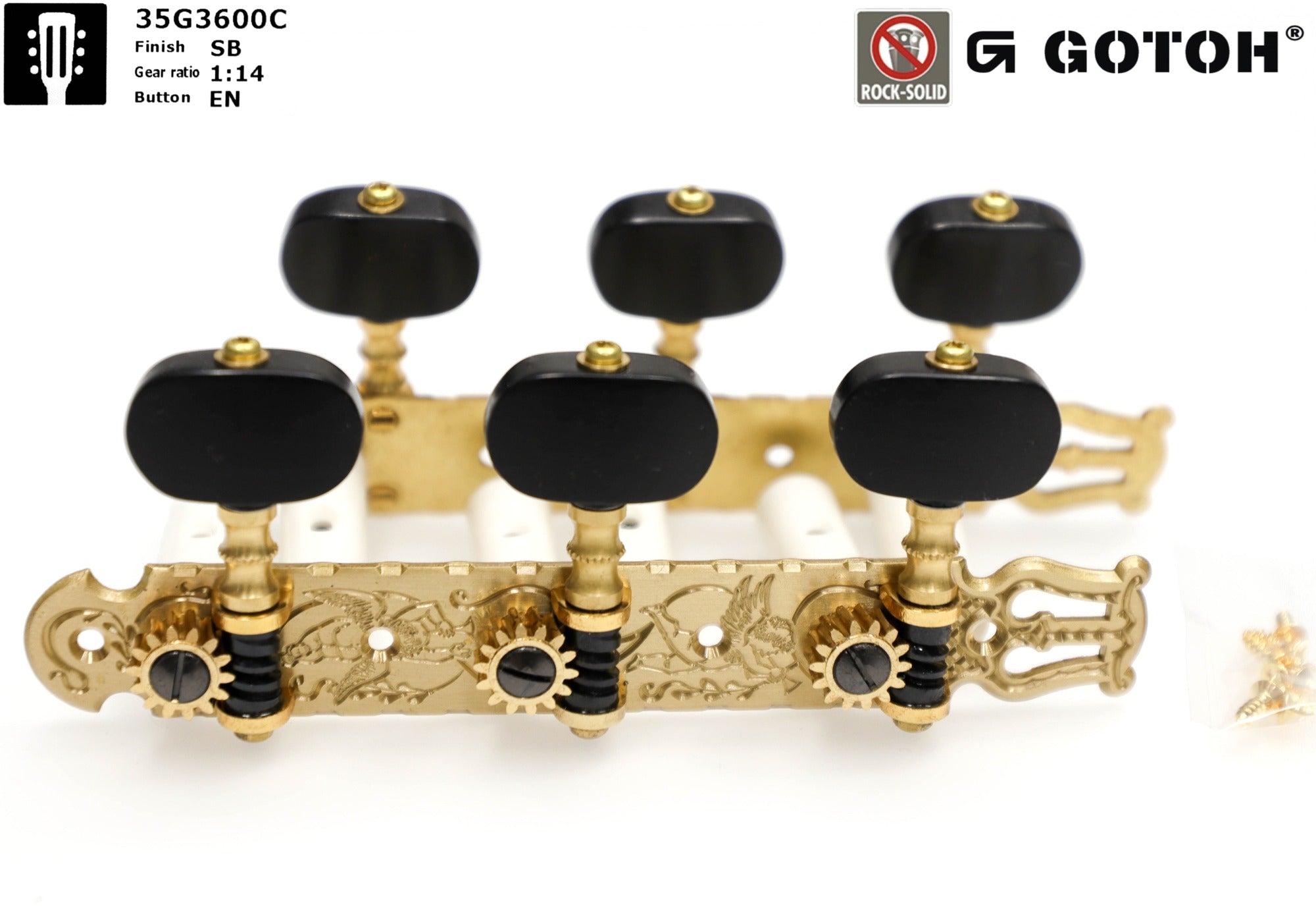 Gotoh 35G3600C(SB)EN Tuners with 10mm Plastic Rollers for Acoustic Guitars (Solid Brass, Ebony Knobs)