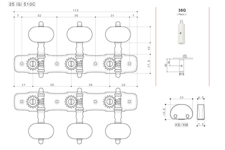 Gotoh 35G510C(G)KB Tuners with 10mm Plastic Rollers for Acoustic Guitars (Gold)