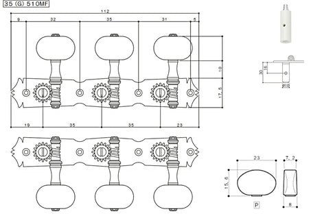 Set of Premium Lubri-Plated Gotoh 35G510 series tuners, Gold X-Finish plate, Plastic Ivoroid knobs, Plastic Rollers, complete set.