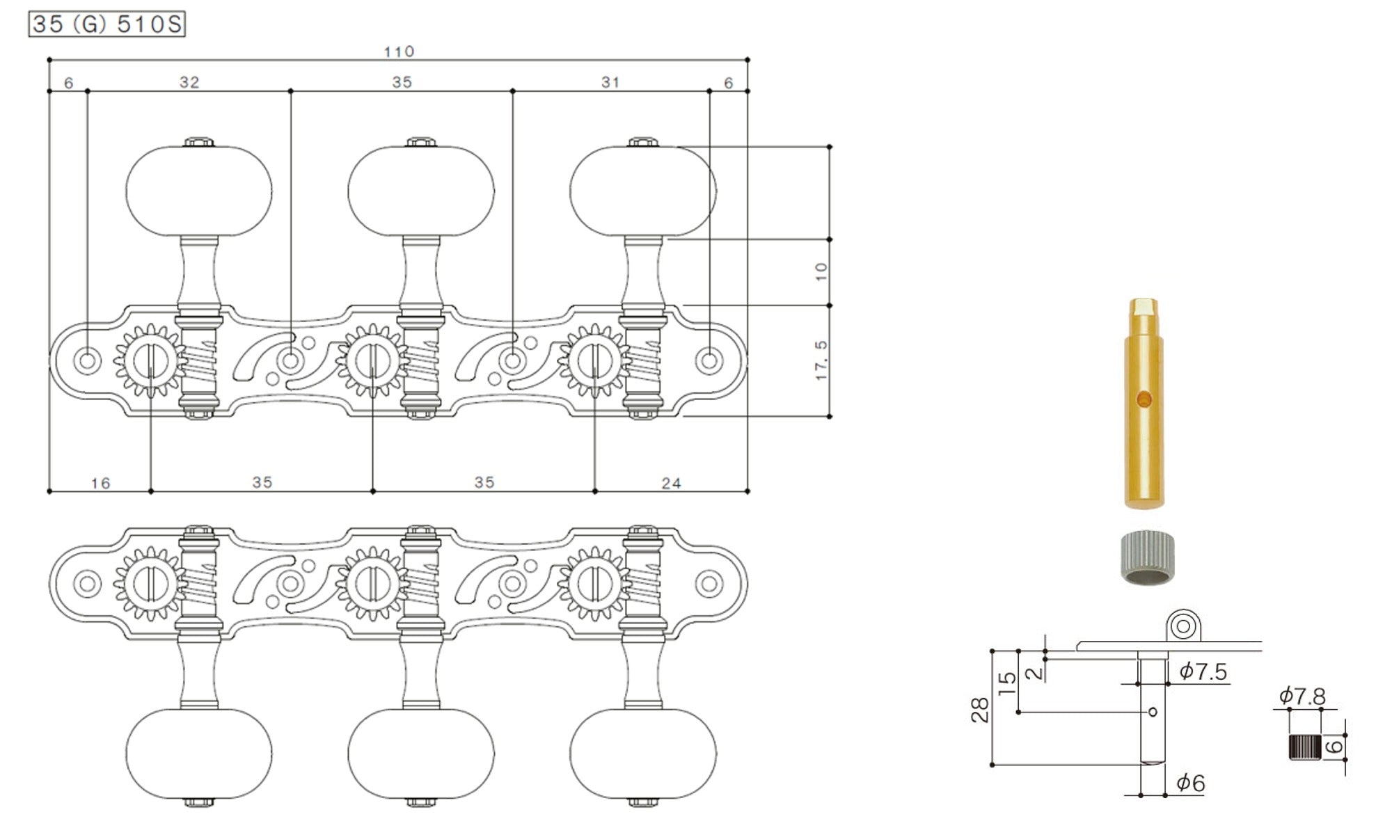 Gotoh 35P620(G)2R Tuners with 6mm Metal Rollers for Acoustic Guitars (Gold)