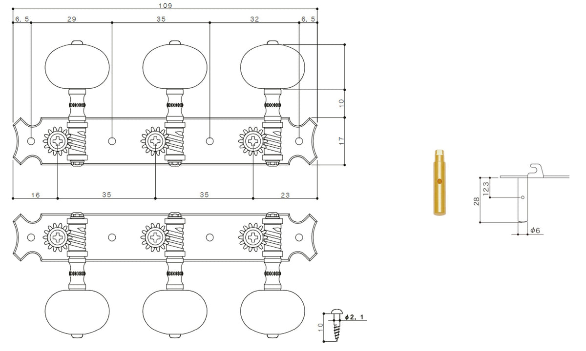 Gotoh 35P620(G)2W Tuners with 6mm Metal Rollers for Acoustic Guitars (Gold)