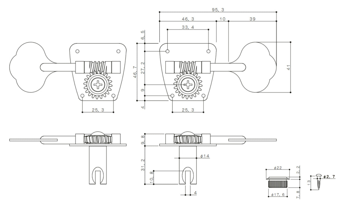 Use this tuner on guitars with inline pegs, or combine it with our FB30(G) tuners to achieve any configuration you desire (2+2, 2+3, 3+3, etc.).