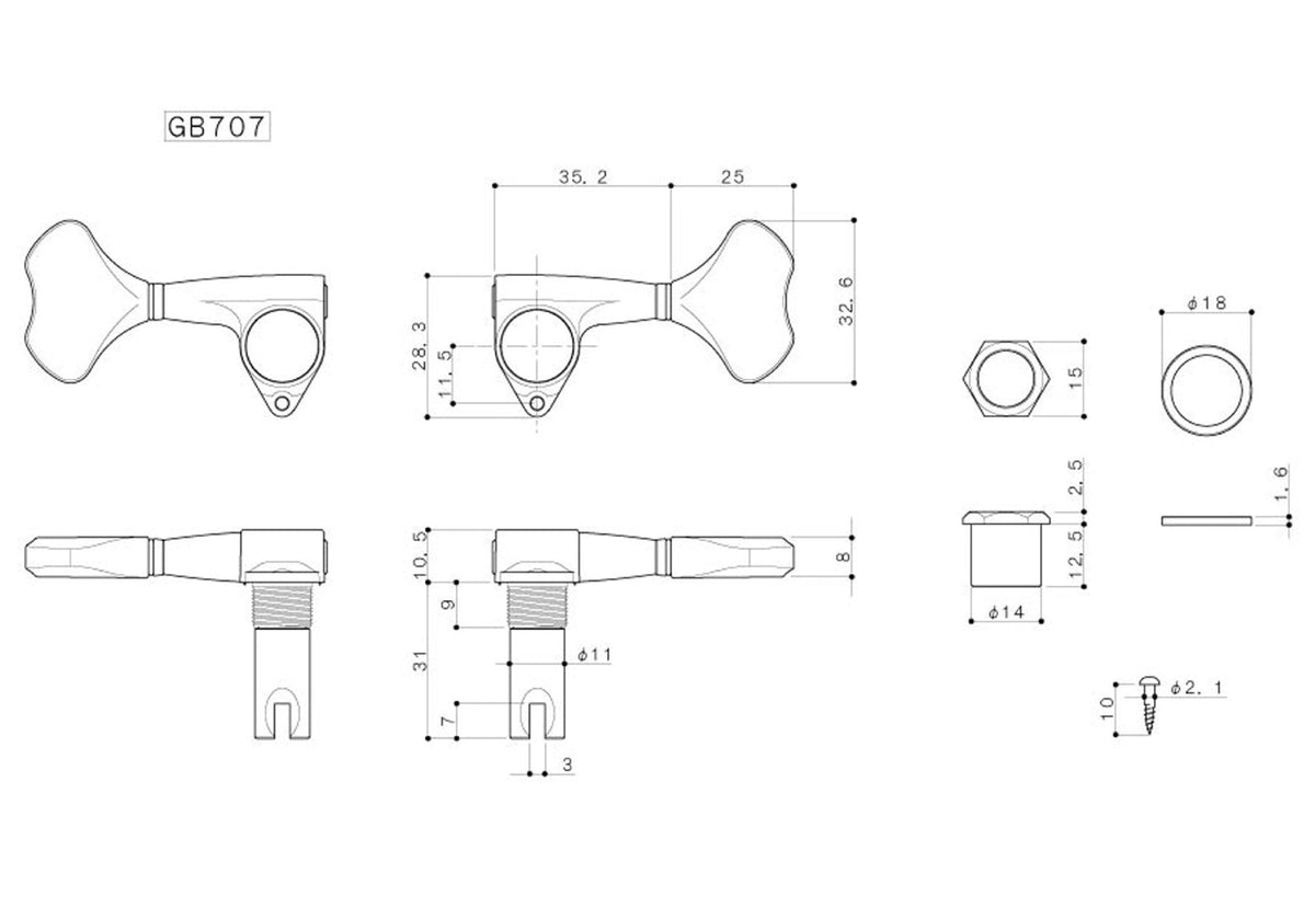 Use this tuner on guitars with inline pegs, or combine it with our GB707(CK) tuners to achieve any configuration you desire (2+2, 2+3, 3+3, etc.).