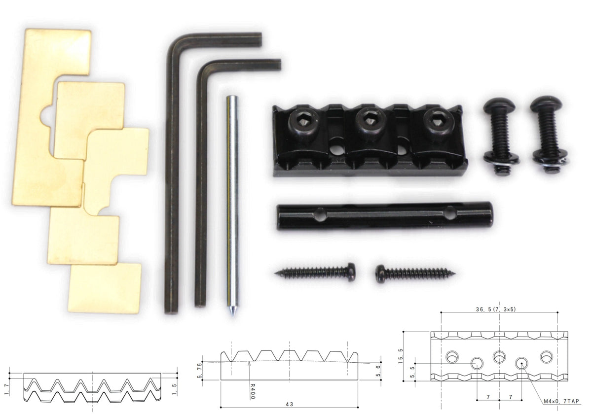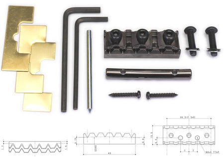 Floyd Rose style locking guitar nut available in 4 finishes: Black, Cosmo Black, Chrome and Gold.