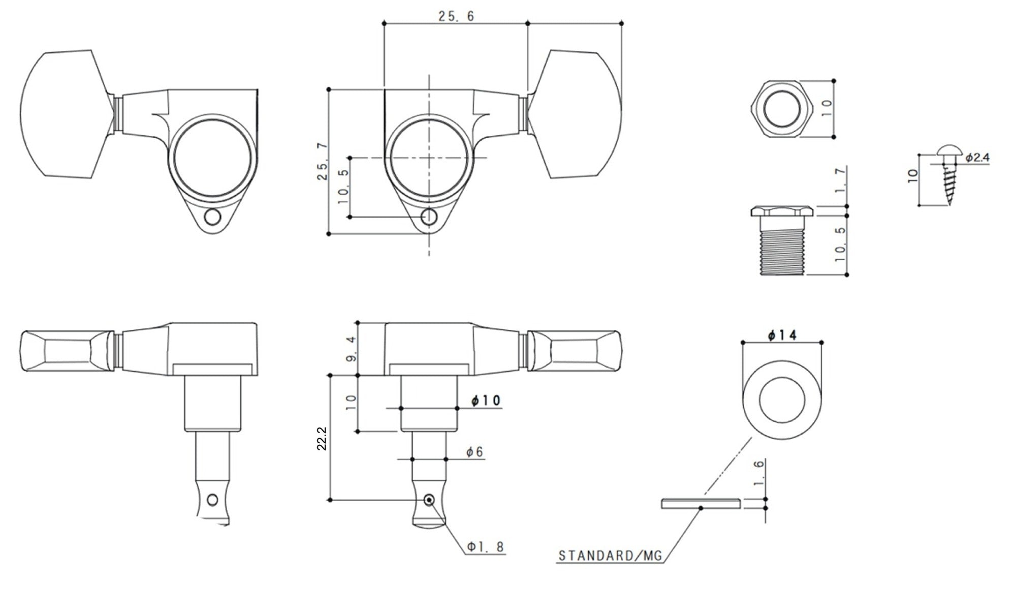 Gotoh SG301(G)P4N Tuners with Standard Post, 3L+3R (Gold)